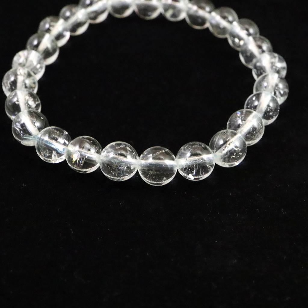 天然非加熱 ゴシェナイト ヒマラヤンベリル 7.5mm玉ブレスレット 16.5g (ID:24859)