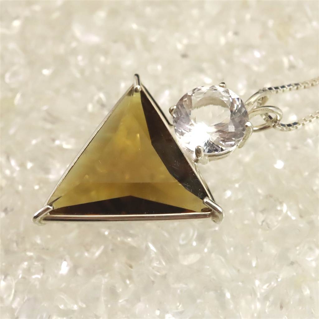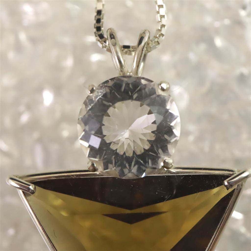 ◆ 大天使ガブリエルのイメージカラーであるシトリン水晶とファセットカットされたφ12mmのロシアンレムリアンとのコンビ・ペンダントトップです。チェーンとギフトボックス付きです。