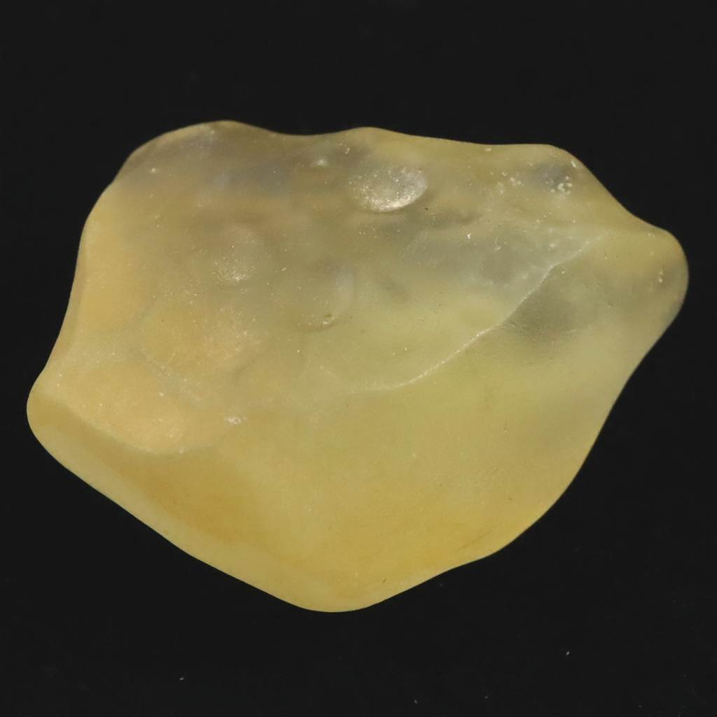 ◆ リビアングラスは、エジプトとリビアにまたがるリビア砂漠で採取される天然ガラスで、テクタイトの一種であるインパクトガラスに分類されます。約2900万年前、隕石の衝突による強大な熱と圧力で地表の砂岩が溶け、急速に冷えて形成されたとされています。主成分は二酸化ケイ素(SiO2)で、水晶に近い組成を持ちつつ、ニッケルやイリジウムなど地球上では稀な隕石由来の元素を含む点が特徴です。色は透明感のあるレモンイエローや黄緑色で、気泡やクリストバライト(方珪石)の白い内包物が含まれ、独特の美しさを持ちます。硬度は5~6と比較的柔らかく、取り扱いには注意が必要です。古代エジプトではツタンカーメン王の墓からスカラベの装飾品として発見され、歴史的価値も高い石です。現在は採掘制限により希少性が増しており、透明度が高いものほど価値が上がります。メタフィジカルな分野では、宇宙とのつながりや意識の拡張をサポートするとされ、瞑想やヒーリングに用いられることがあります。
