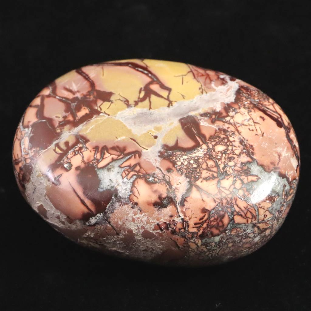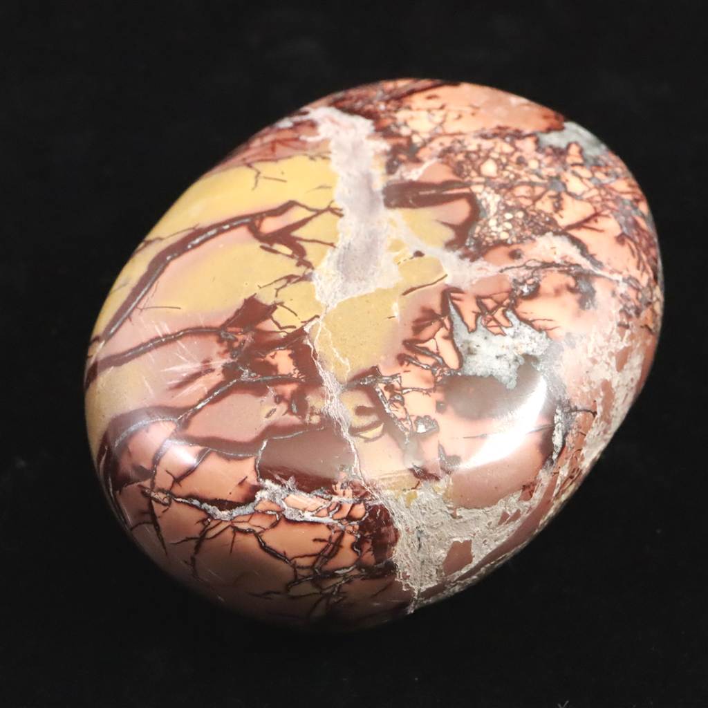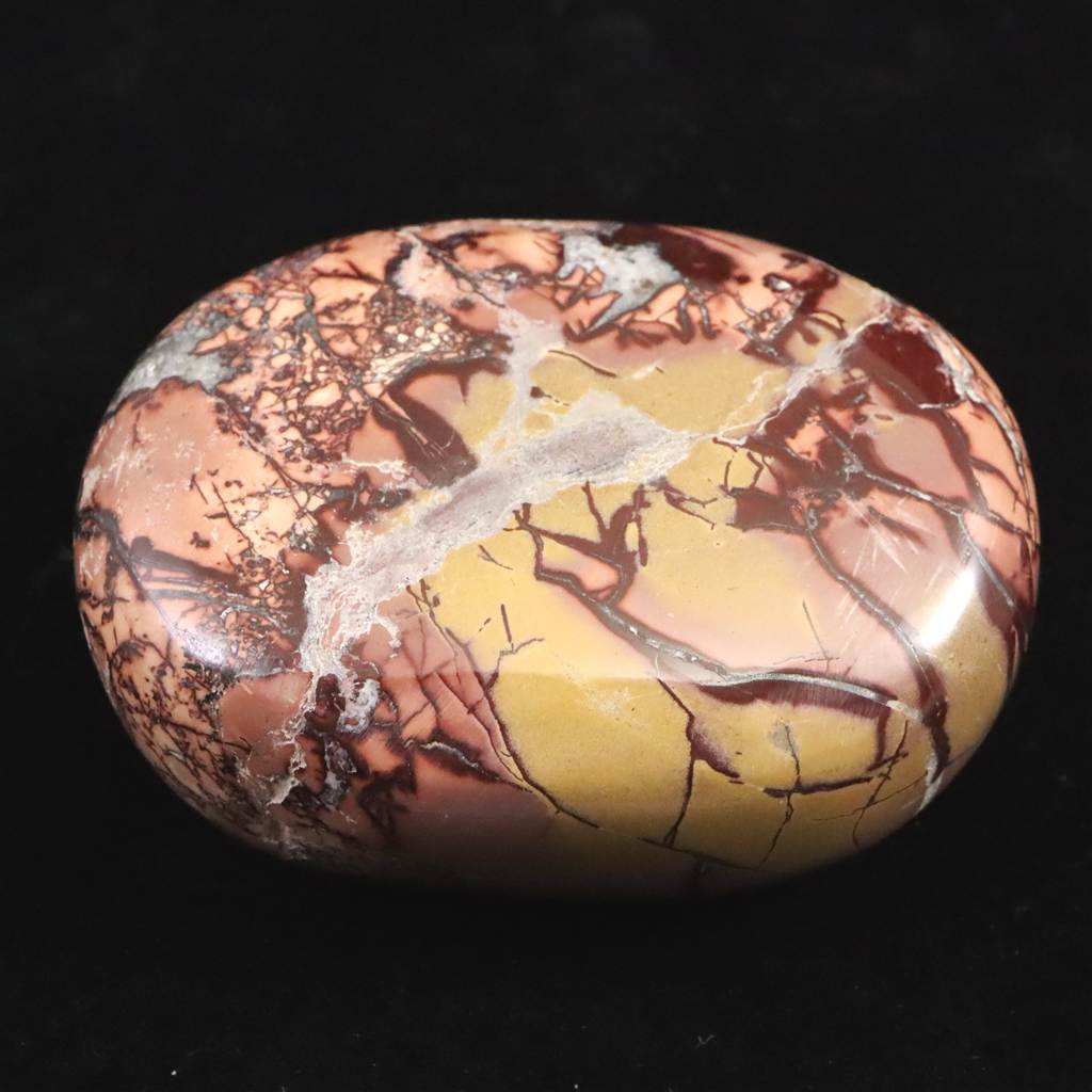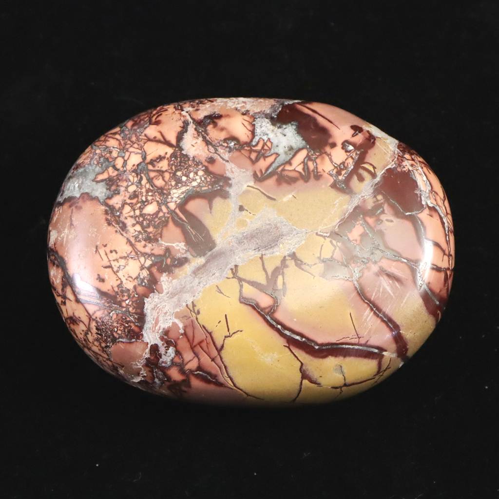 ◆ ムーアカイト(ムーカイト、モッカイト、モーカイトとも呼ばれています)は、珪化した堆積岩の一種で、微細な石英やオパール質シリカに鉄分や粘土鉱物が混ざり合って構成されています。赤や黄色、茶、白など多彩な色彩と模様が特徴で、モース硬度は6〜7と比較的硬く、美しく研磨される石です。力強い色合いから装飾や護符としても親しまれ、変化に順応し前向きに歩む象徴として大切にされてきました。