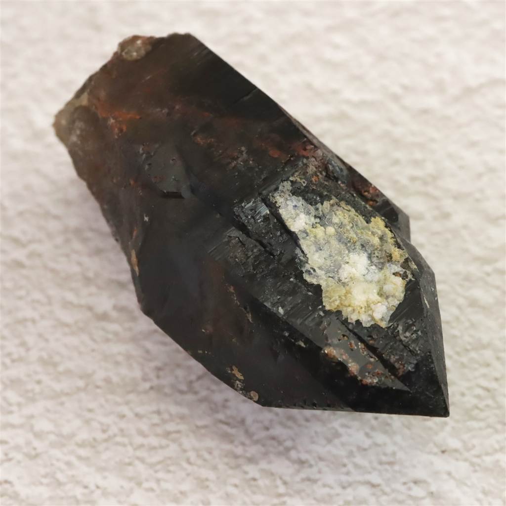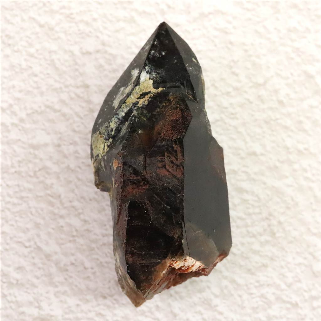 ◆ 入手が難しくなってきている岐阜県中津川産の黒水晶原石です。先端がカテドラルになっています。