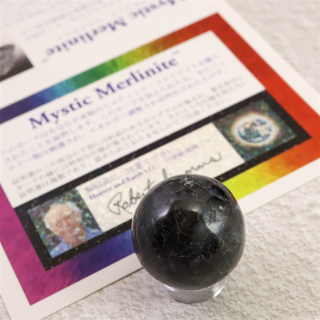 ◆ ロバート・シモンズ氏より...ミスティック・メルリナイトは、目に見える世界と目に見えない世界の間のベールを取り払い、より深い直感的な能力への扉を開くことができます。心の休眠している領域を開くことを容易にすることができます。微妙な領域のコミュニケーションに対する感度を高め、植物や動物の精霊、悪魔のような存在との「対話」を可能にします。魔法の顕現や神秘的な経験への覚醒のための要素エネルギーと働きたい人のために、この石は強力な味方になることができます。ミスティック・メルリナイトの黒と白の混合は、自己の光と影の側面を象徴しています。