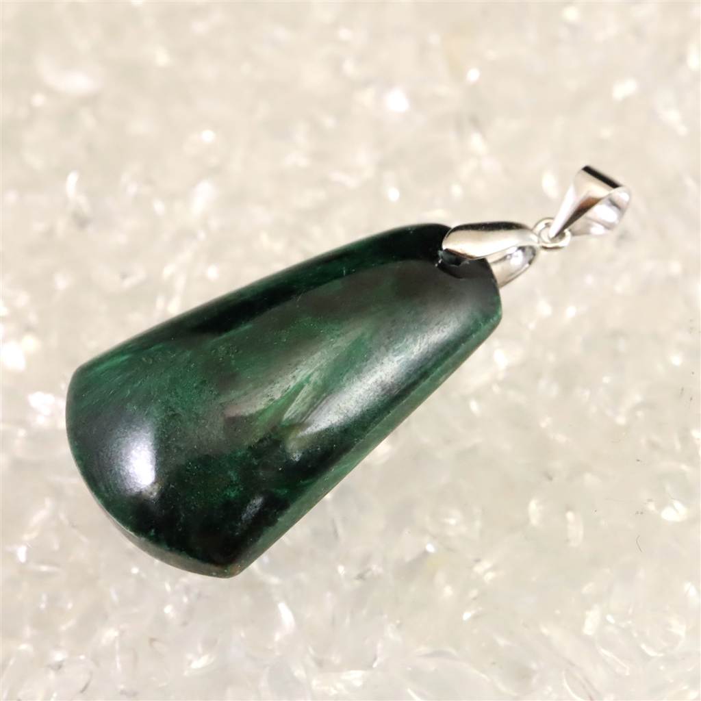ベルベットマラカイト 孔雀石 30mmドロップ ペンダントトップ 7.6g (ID:88773)