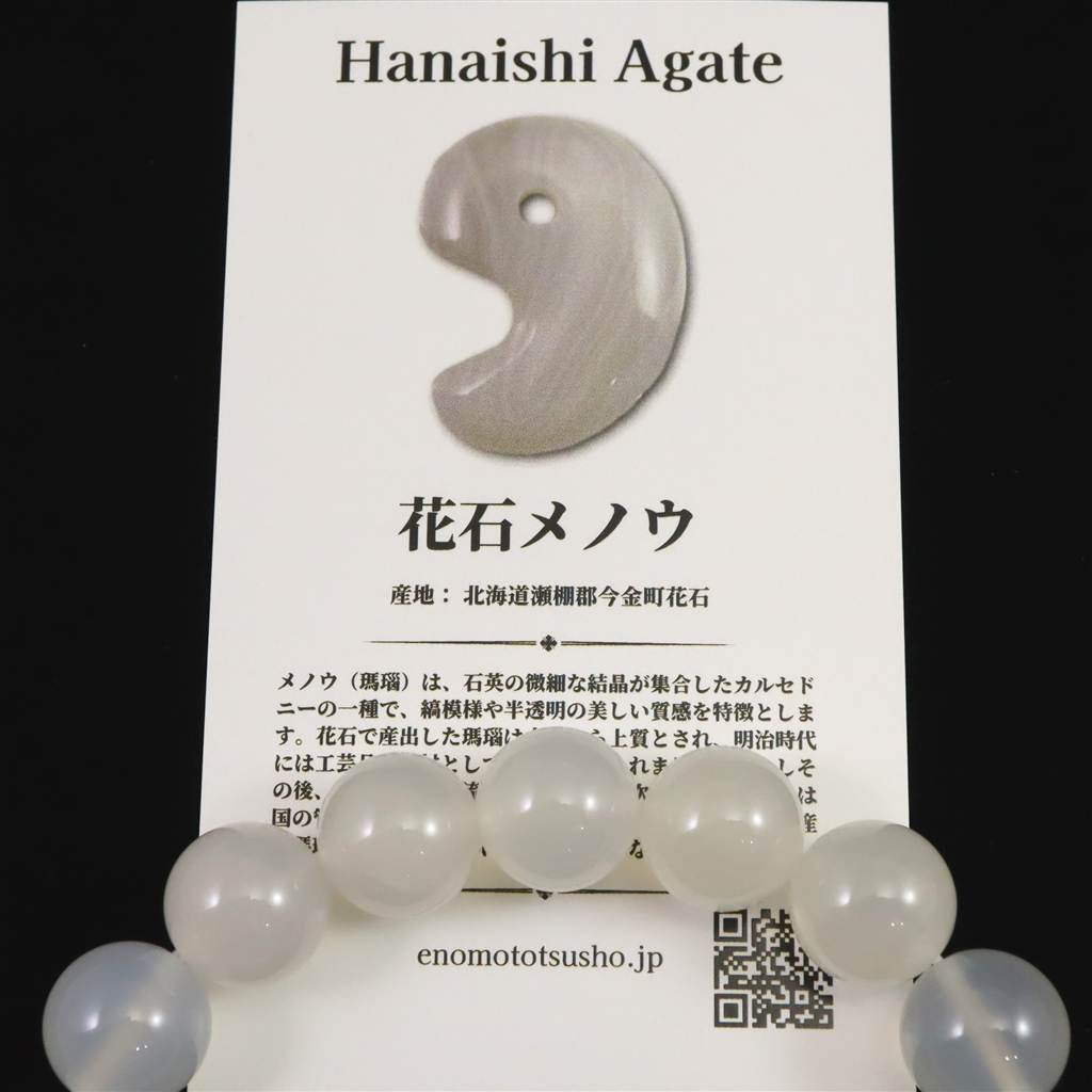 北海道 花石メノウ 瑪瑙 12mm玉 ブレスレット ディレクトリカード付 43.5g (ID:34705)