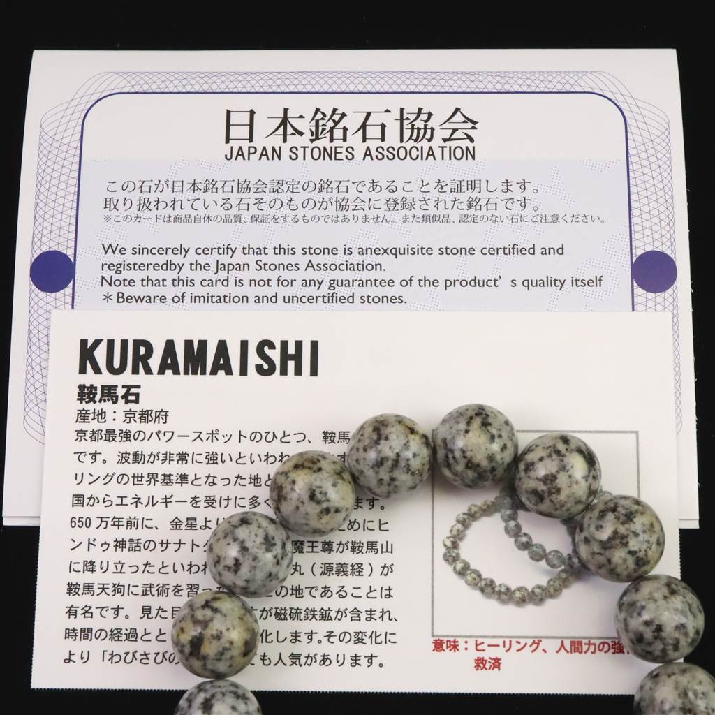京都府産 鞍馬石 12mm玉ブレスレット 証明書付 41.9g (ID:65697)