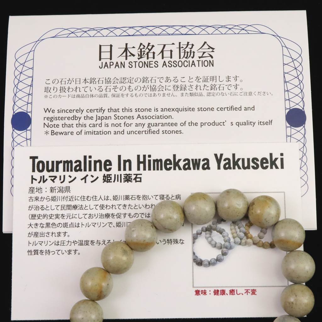 ・商品名 :姫川薬石 トルマリン入り 10mm玉ブレスレット 証明書付 28.0g (ID:93983)