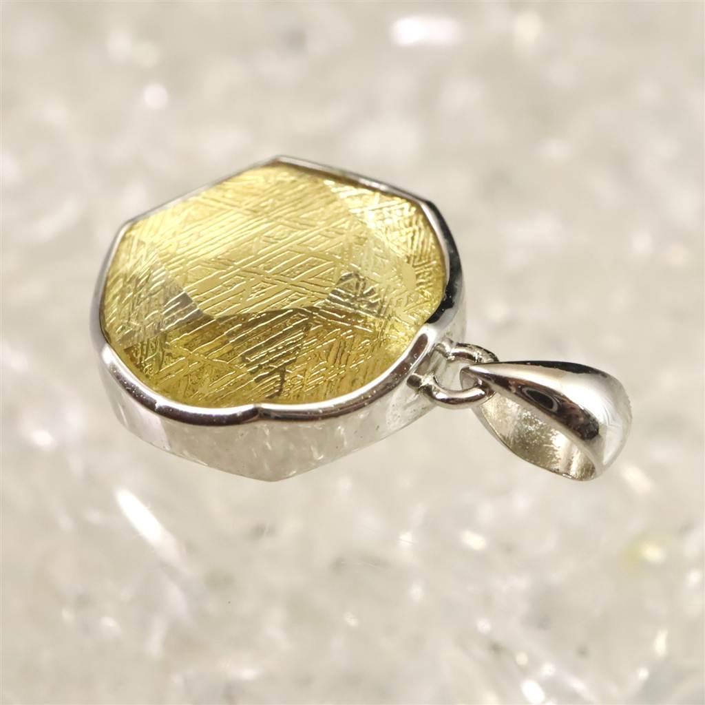 ギベオン ゴールドカラー 12mm六芒星カット ペンダントトップ 2.8g (ID:27403)