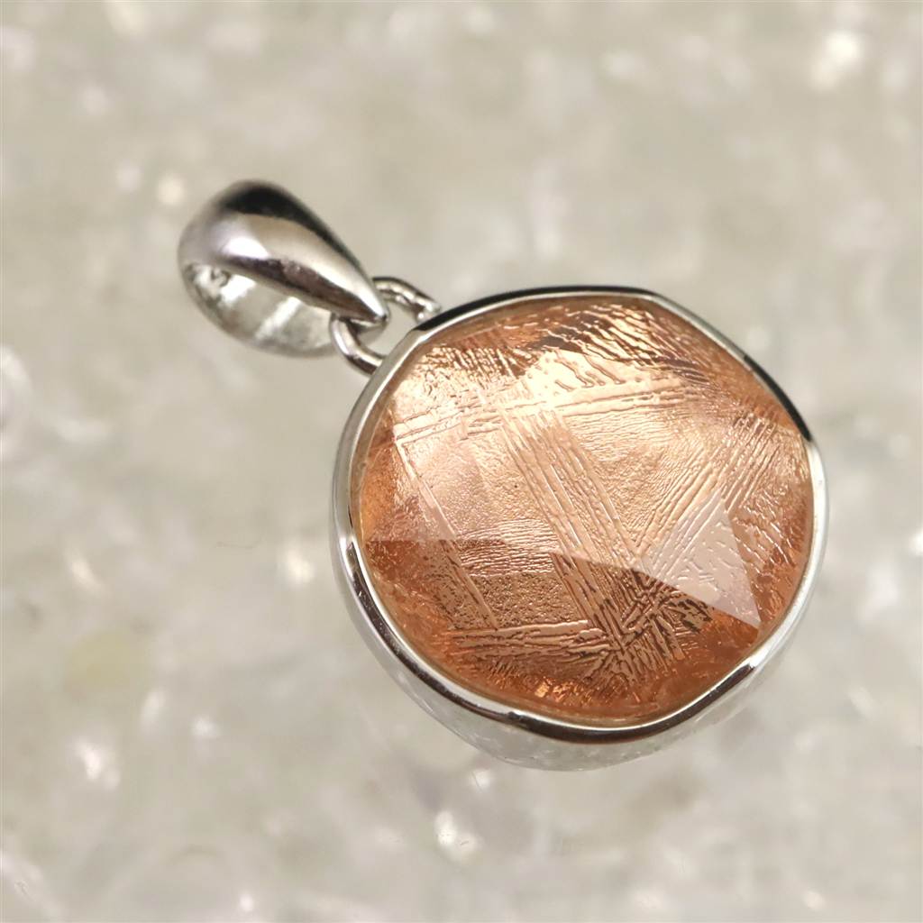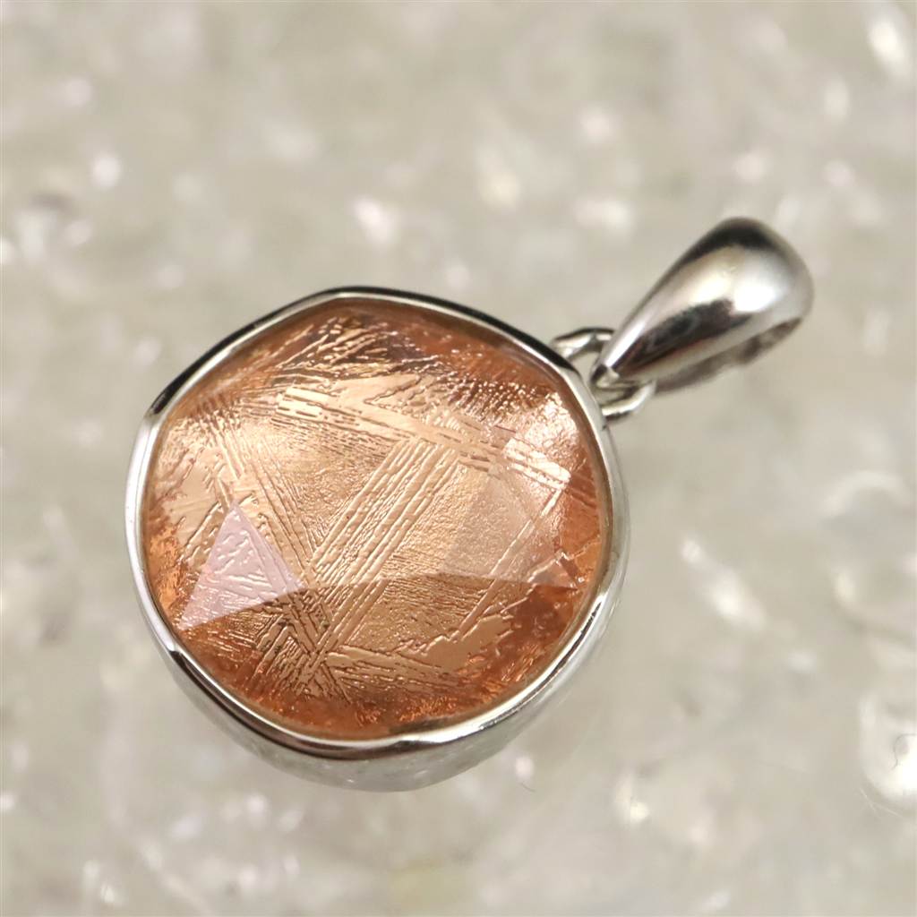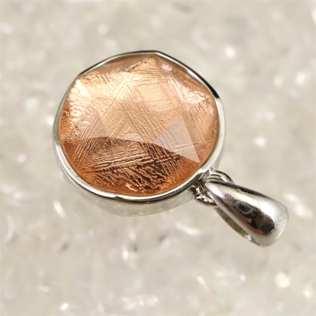 ギベオン ピンクゴールドカラー 12mm六芒星カット ペンダントトップ 2.7g (ID:43318)