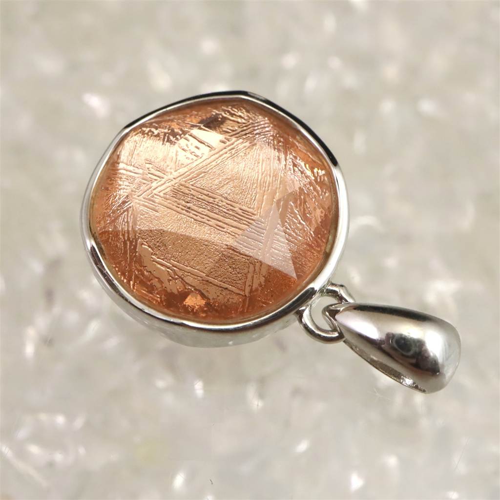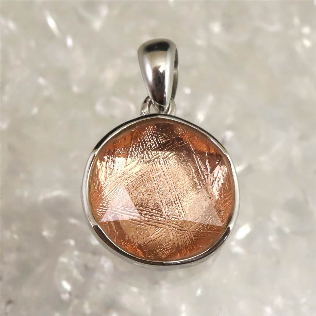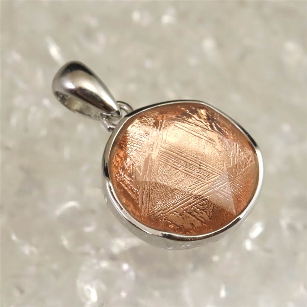 ギベオン ピンクゴールドカラー 12mm六芒星カット ペンダントトップ 2.7g (ID:43318)