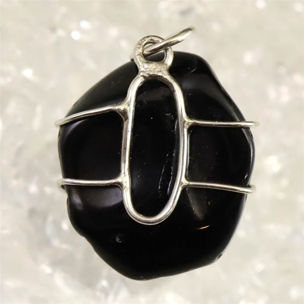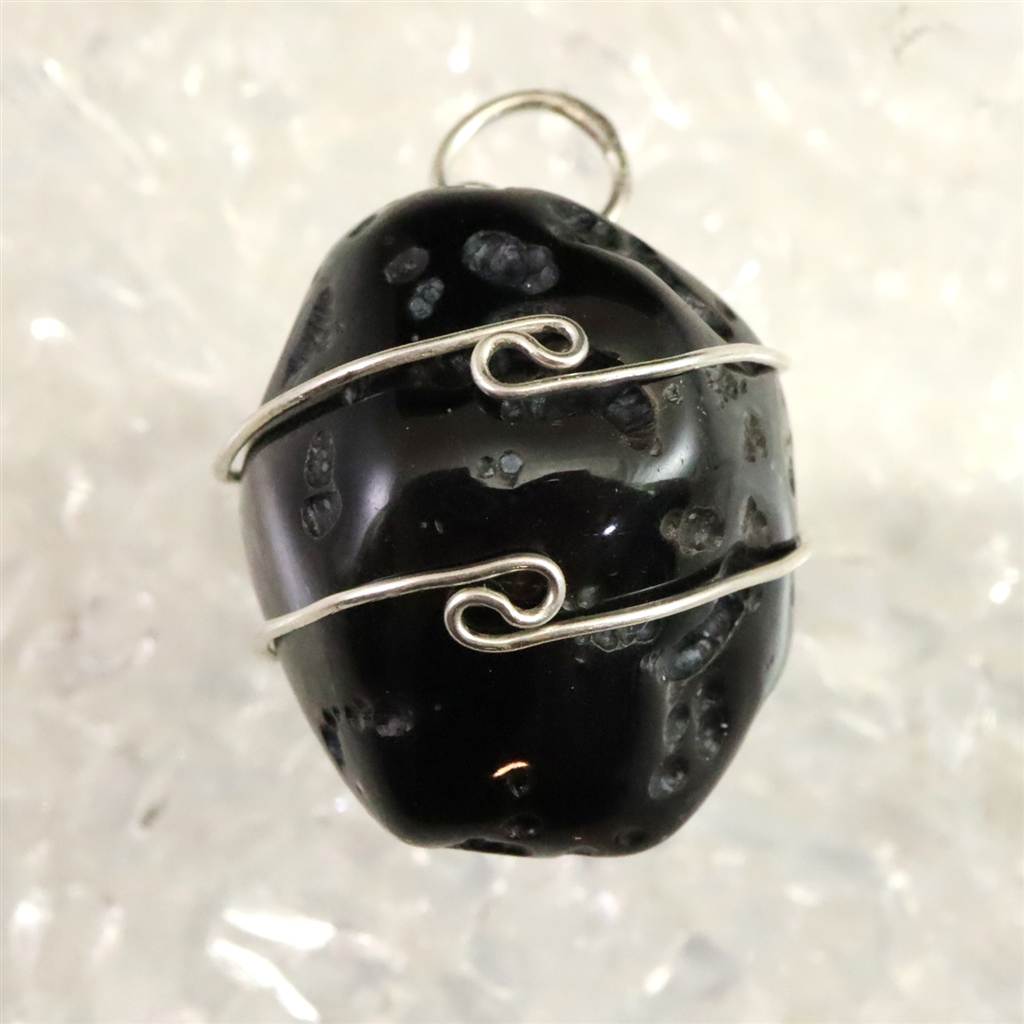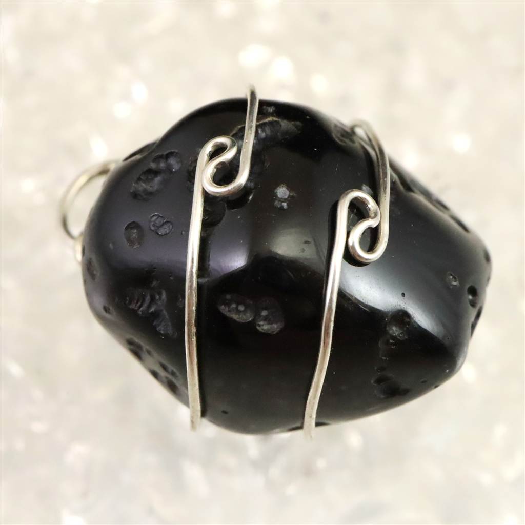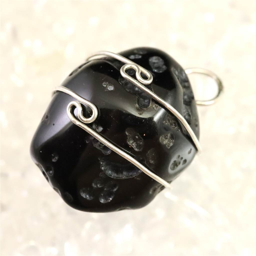 ◆ 本商品写真は現物のものです。写真の商品をお届けします。H&E社のチベタンテクタイトのワイヤーラップペンダントトップです。H&E社のペンダントトップの台紙を証明書の代わりにお付けいたします。