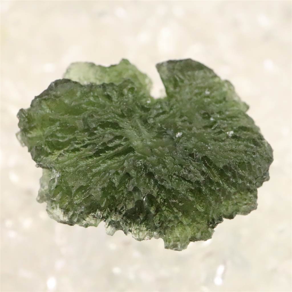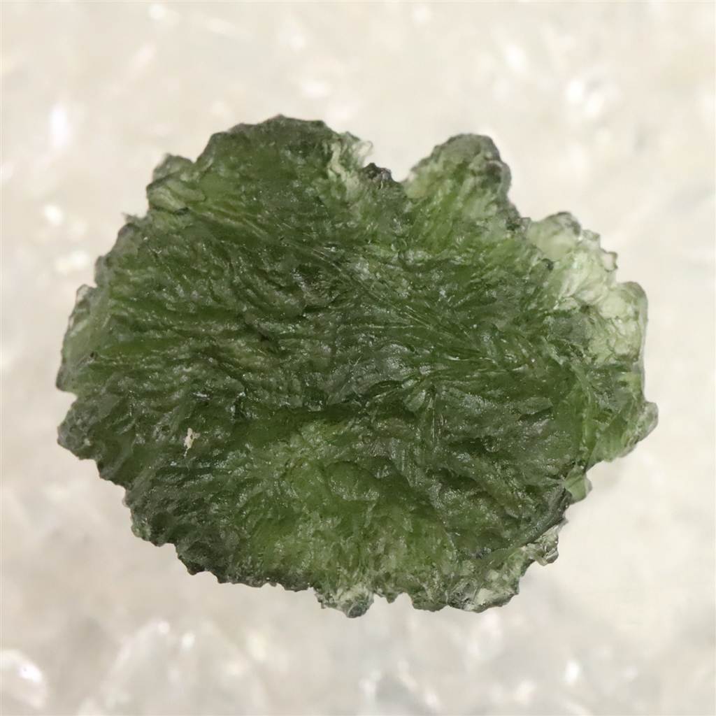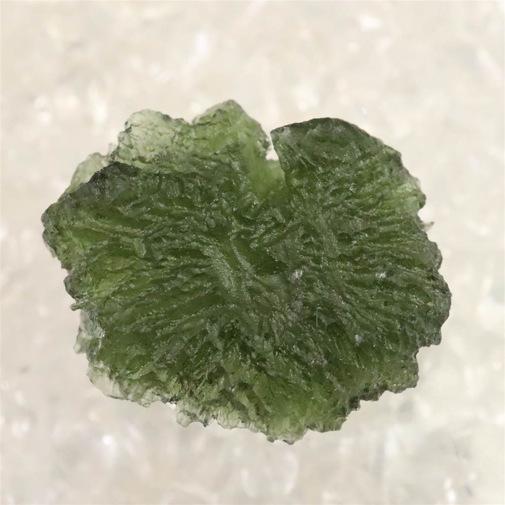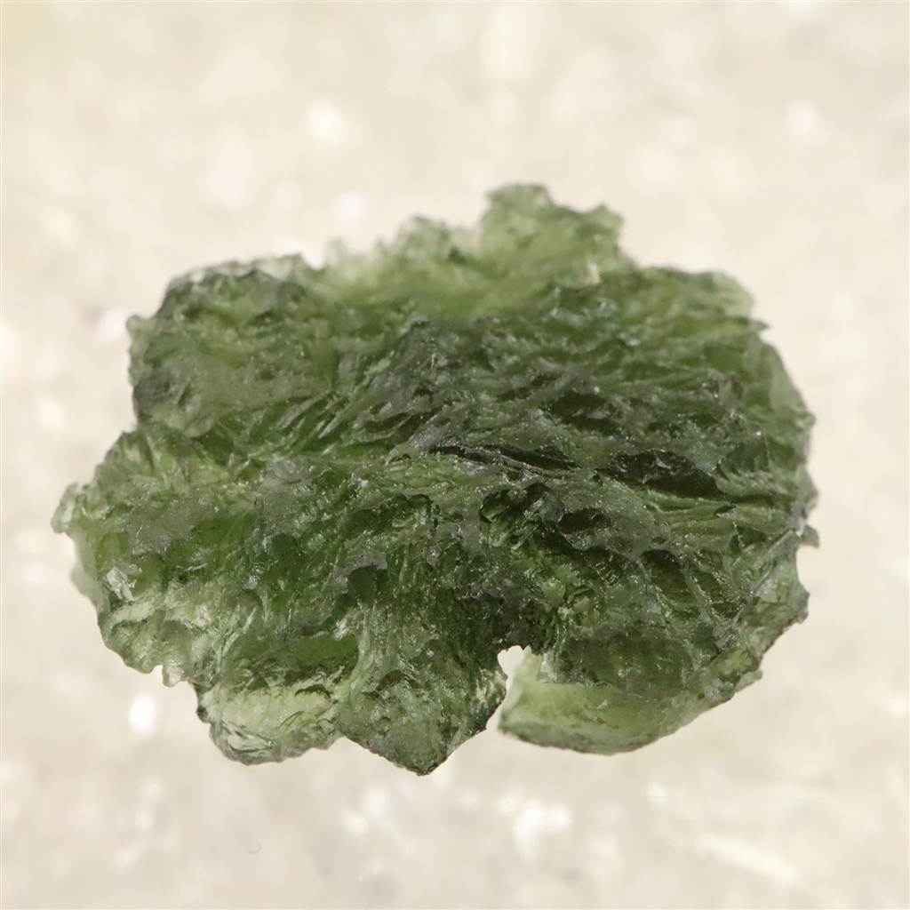 ◆ モルダバイトは、約1,500万年前に隕石衝突の熱と衝撃によって形成された天然ガラス「テクタイト」の一種で、主にチェコ南部モルダウ川流域で産出します。透明感ある深緑色と、内部に見られる気泡やしわ模様が特徴です。宇宙と地球の融合を象徴し、意識の変容や霊的成長を促す象徴として知られます。また、固定観念からの解放や新たな視点の発見を象徴し、瞑想や自己探求の場面で用いられることもあります。その特異な生成背景と美しい色合いが、多くの人を魅了してきた天然石です。