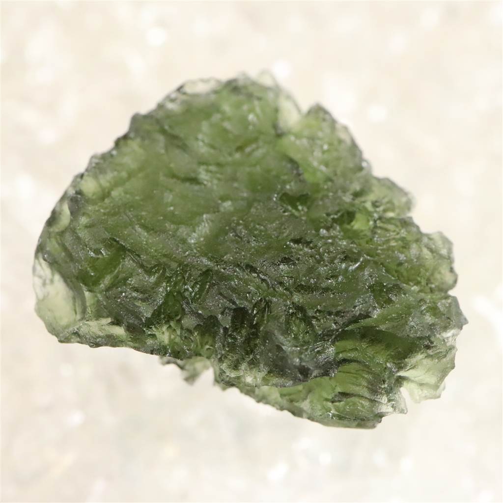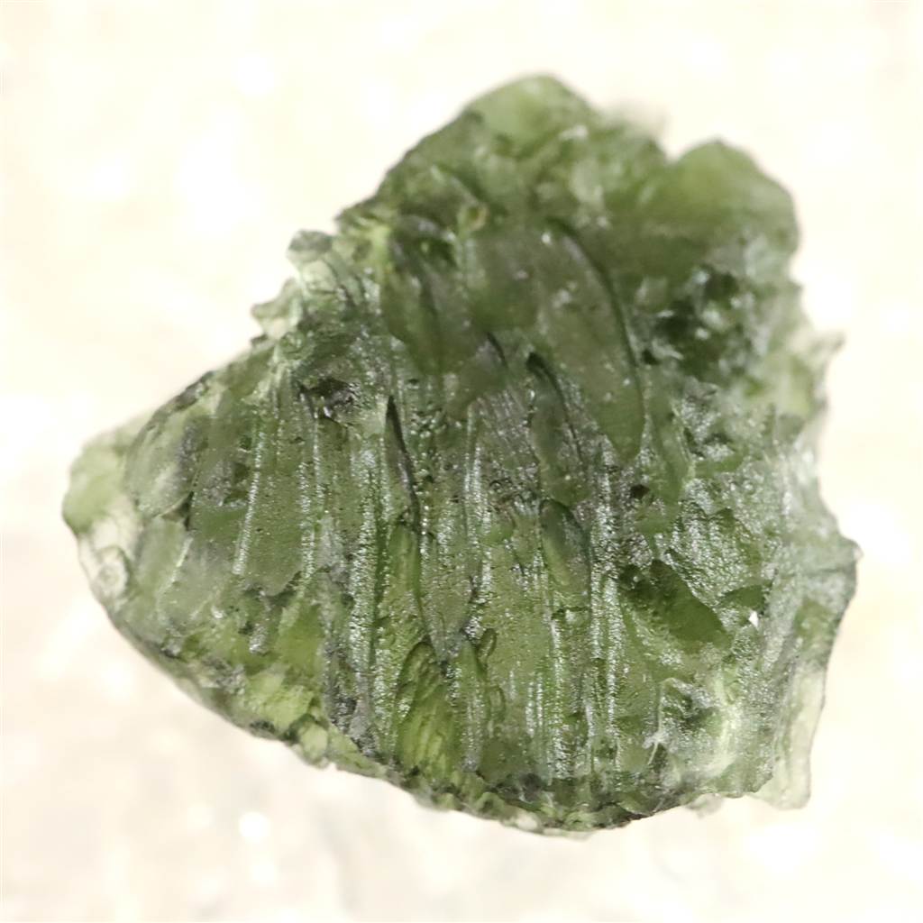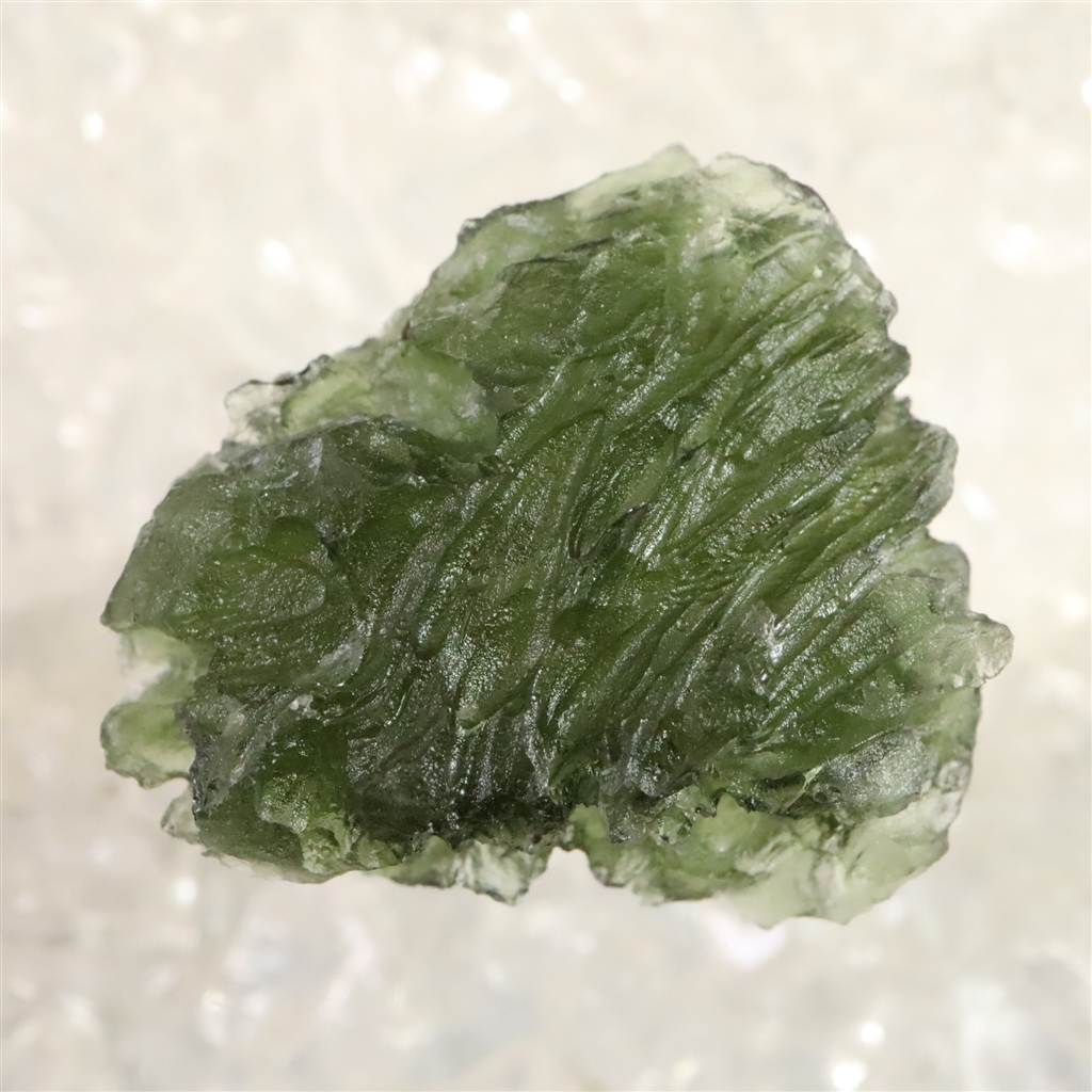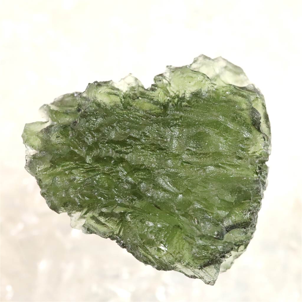 ◆ モルダバイトは、約1,500万年前に隕石衝突の熱と衝撃によって形成された天然ガラス「テクタイト」の一種で、主にチェコ南部モルダウ川流域で産出します。透明感ある深緑色と、内部に見られる気泡やしわ模様が特徴です。宇宙と地球の融合を象徴し、意識の変容や霊的成長を促す象徴として知られます。また、固定観念からの解放や新たな視点の発見を象徴し、瞑想や自己探求の場面で用いられることもあります。その特異な生成背景と美しい色合いが、多くの人を魅了してきた天然石です。