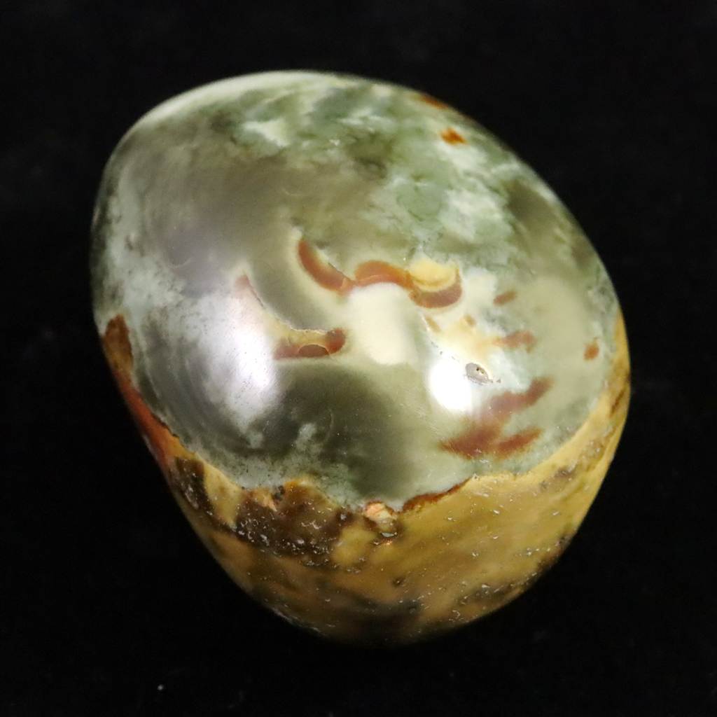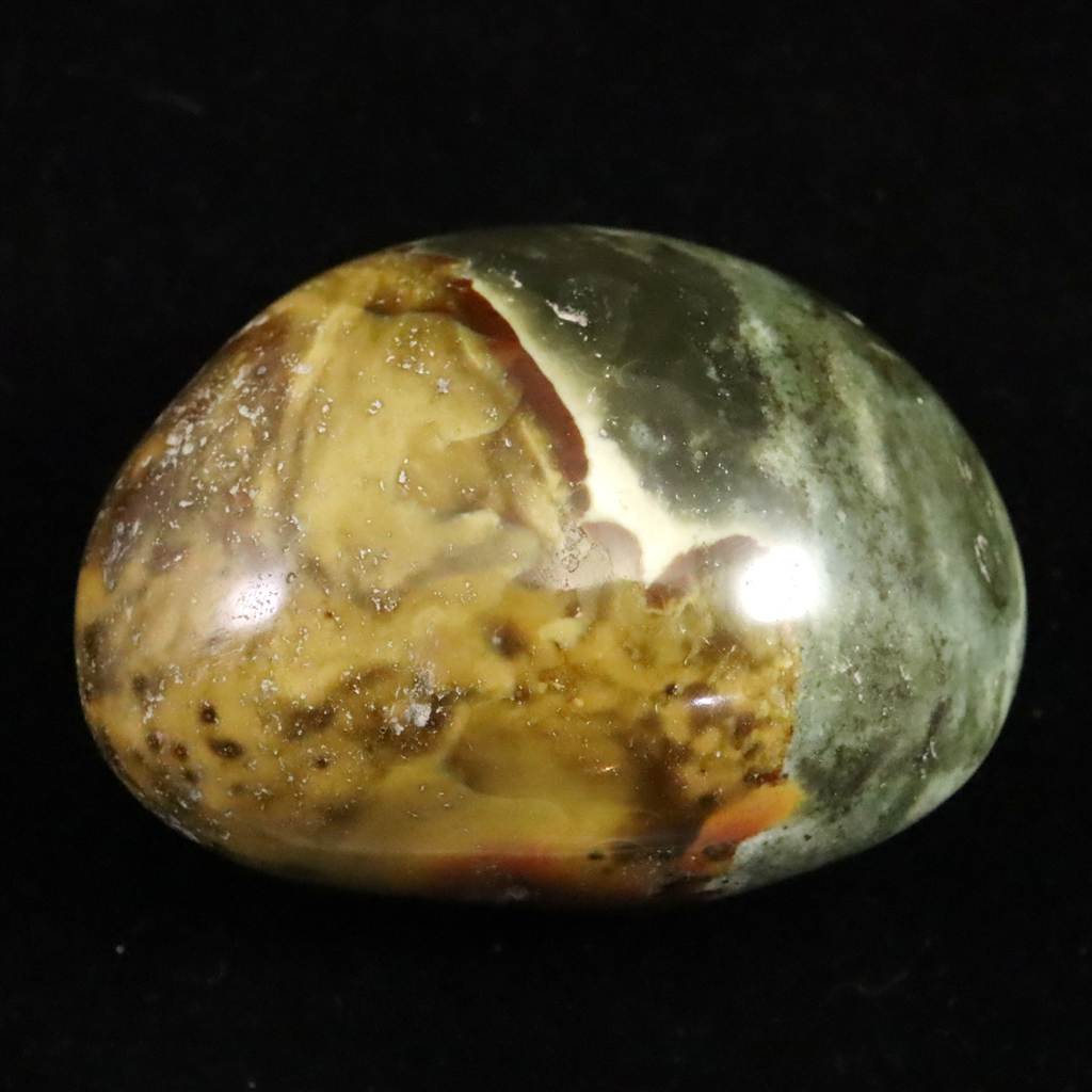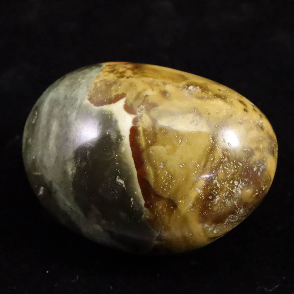◆ ムーアカイト(ムーカイト、モッカイト、モーカイトとも呼ばれています)は、珪化した堆積岩の一種で、微細な石英やオパール質シリカに鉄分や粘土鉱物が混ざり合って構成されています。赤や黄色、茶、白など多彩な色彩と模様が特徴で、モース硬度は6〜7と比較的硬く、美しく研磨される石です。力強い色合いから装飾や護符としても親しまれ、変化に順応し前向きに歩む象徴として大切にされてきました。