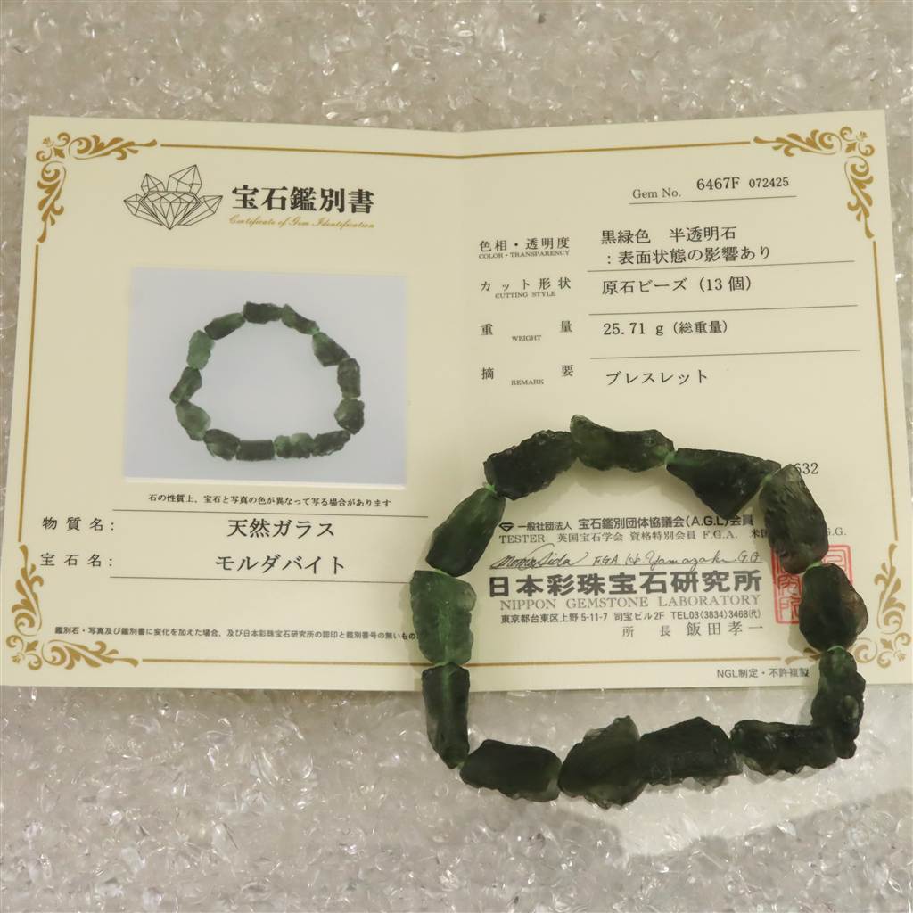 ・商品名 :モルダバイト 原石 ブレスレット 鑑別書付 25.7g (ID:14632)