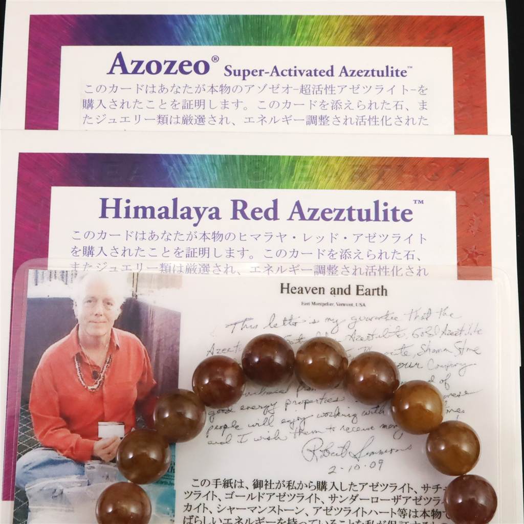 ◆ ロバート・シモンズ著書より...ヒマラヤ・レッド・アゼツライトは、北インドのヒマラヤ・ゴールド・アゼツライトと同じ鉱脈から発見されました。これらの石は、赤とゴールドの色を含み、グレートセントラル・サンの名無き光により活性化されていると言われています。ヒマラヤ・レッド・アゼツライトは、豊富なプラーナと霊的な生命力を供給します。内的な勇気、生命力、情熱、そして力を高めます。この石は、肉体と地球への霊的領域での最高次の波動の統合と共に助けます。この石は、個人の完全性や生命力を高め、破壊的な力と共鳴しないことにより、波動パターンをシフトするという意味において、ある種の霊的な殺菌剤として作動します。ライト・ボディを覚醒させるために、ヒマラヤ・レッド・アゼツライトは、身体の細胞の変成に直接取りかかります。ヒマラヤ・レッド・アゼツライトは、共に瞑想し、細胞意識を覚醒させることにより、身体を覚醒させ、光り輝く状態なるまで(細胞の)粒単位で変容させることを助けます。この石は、破壊的なパターンを解放し、再生と新生へのテンプレートを供給し、さらに高いエネルギーレベルで生きることができるように助けます。ヒマラヤ・レッド・アゼツライトの出現は、人類が、霊的変成の完全なる体験へと準備していることを意味します。