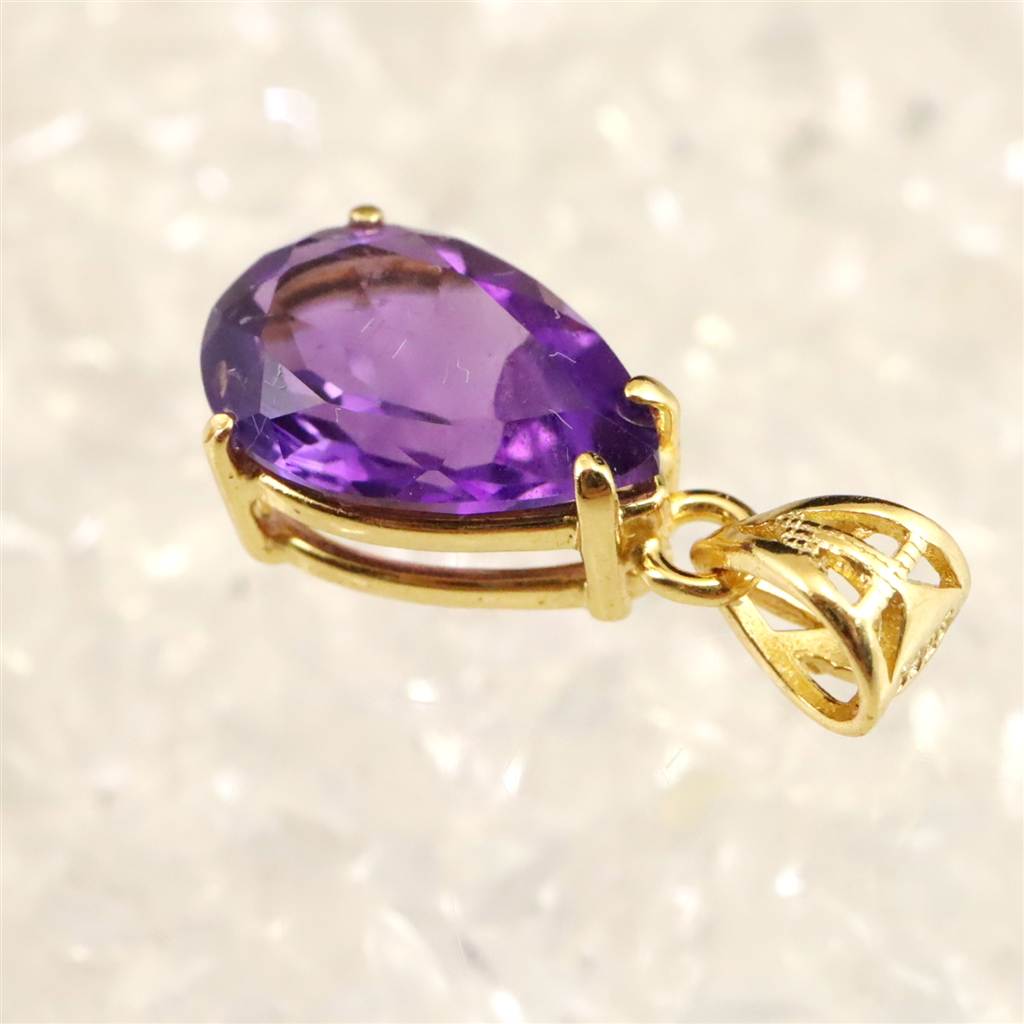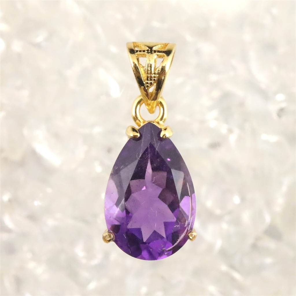 ・商品名 :アメジスト 12mmペアシェイプ型 ペンダントトップ 18KGP 1.51g (ID:18630)