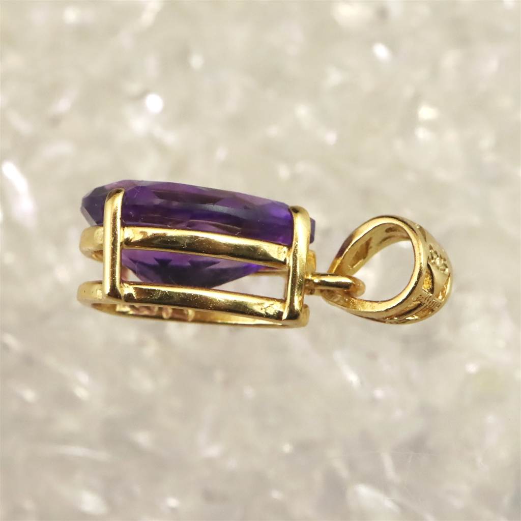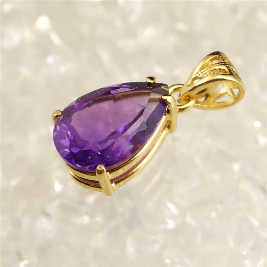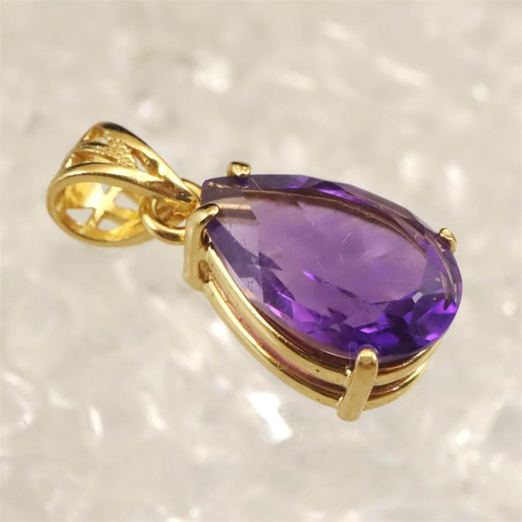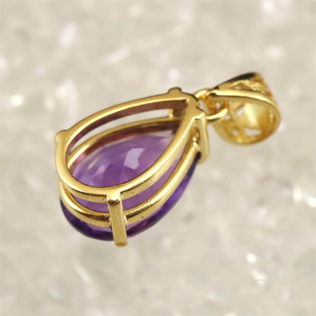 アメジスト 12mmペアシェイプ型 ペンダントトップ 18KGP 1.51g (ID:18630)