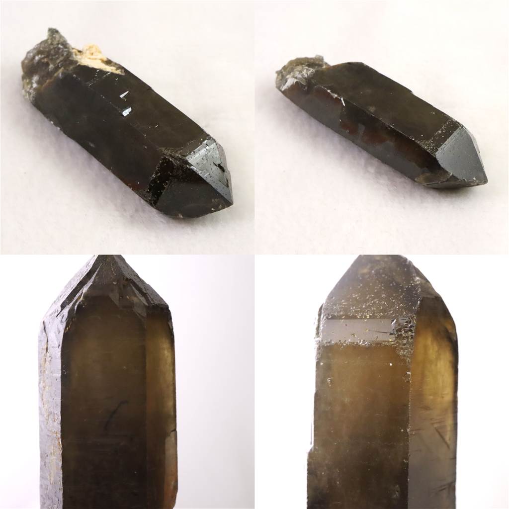 ◆ 岐阜県中津川市蛭川地区で産出される黒水晶(モリオン)は、日本国内でも特に知られる産地のひとつです。モリオンは石英グループに属し、透明な水晶に比べて深い黒色を呈するのが特徴です。この黒色は結晶中に取り込まれた微量元素や放射線の影響によるもので、光をほとんど通さない漆黒の外観を持ちます。蛭川の黒水晶は、結晶が比較的しっかりと発達し、稀に大きな結晶や美しい結晶面を備えるものも確認されています。産出量は限られており、国産モリオンの代表格として鉱物学的にも価値が高い存在です。