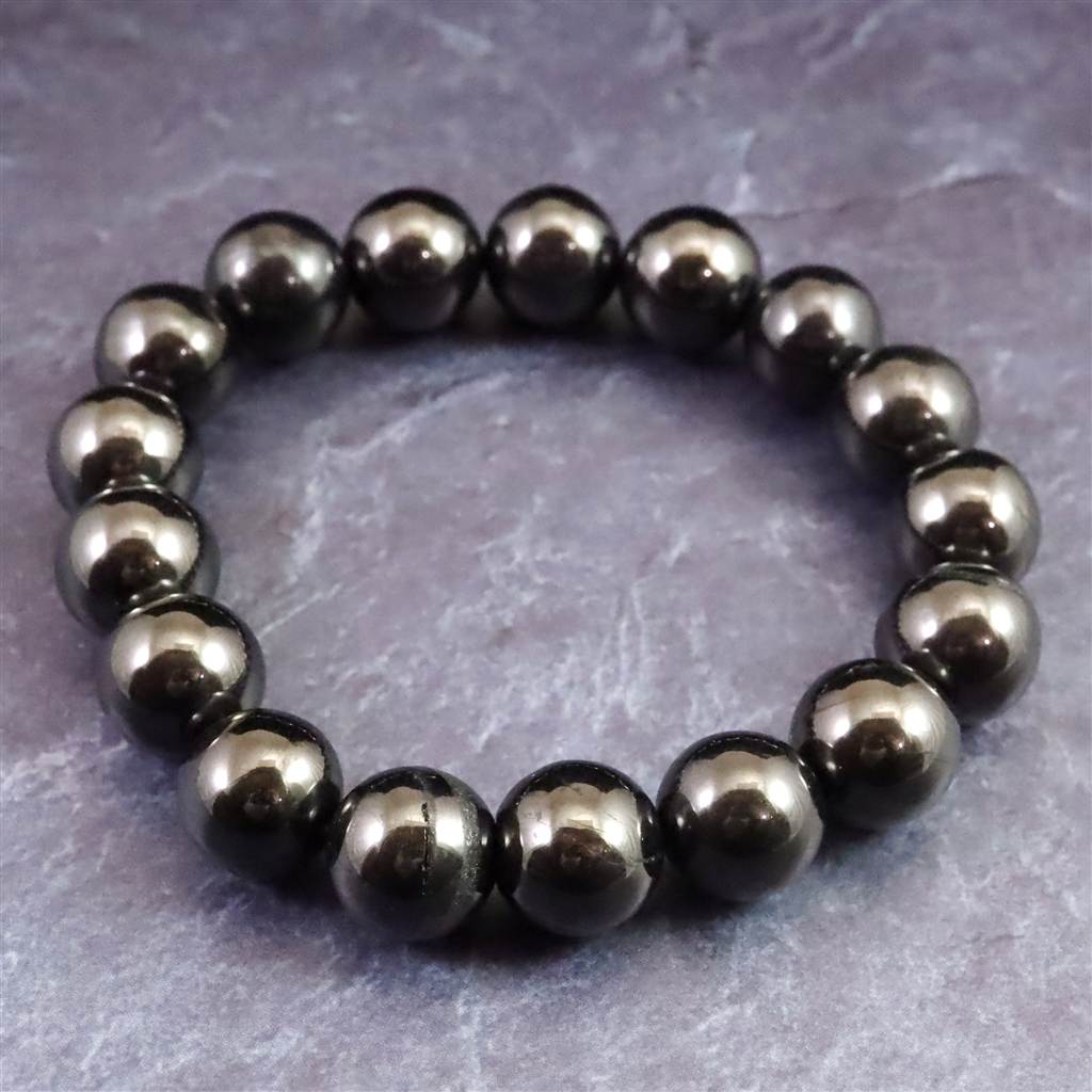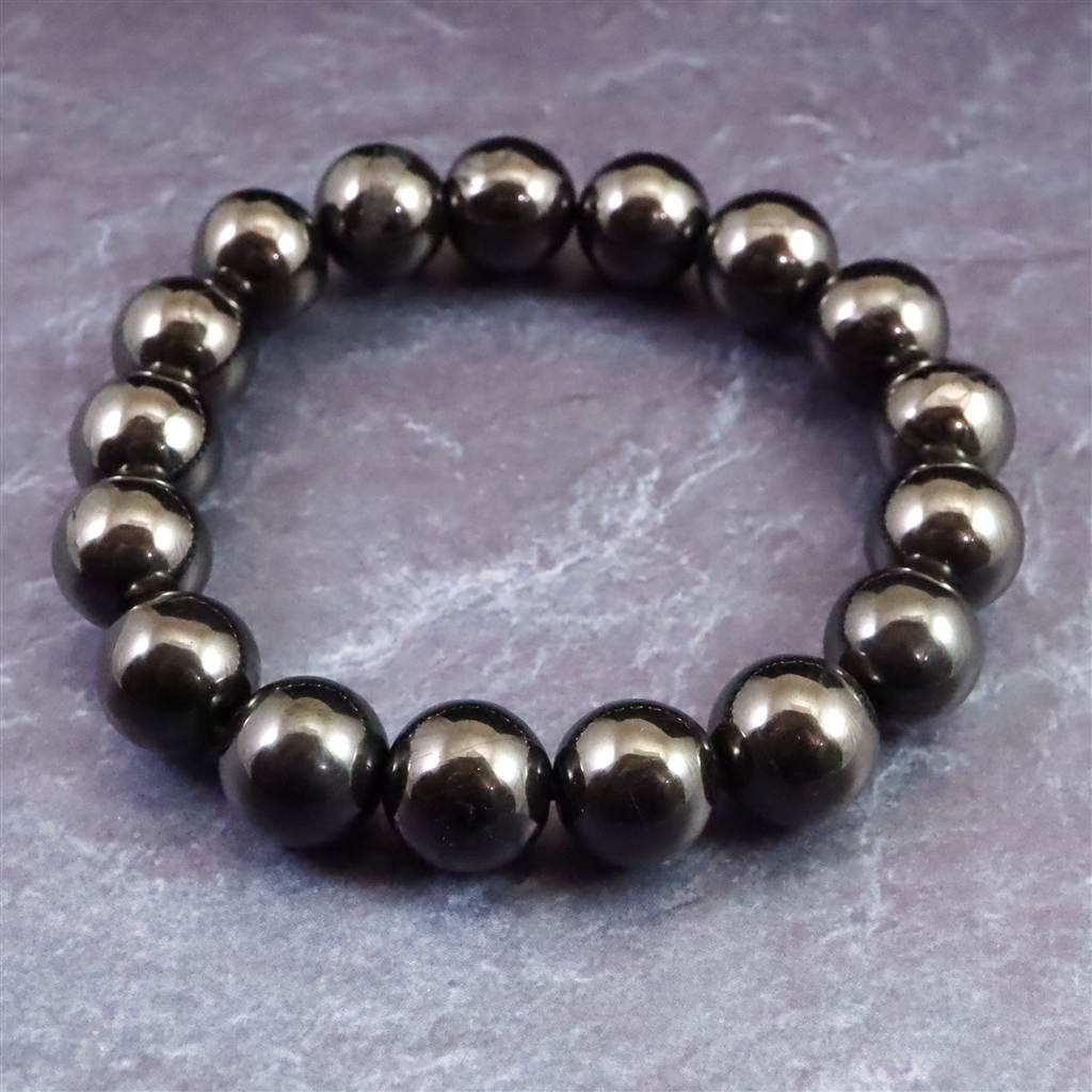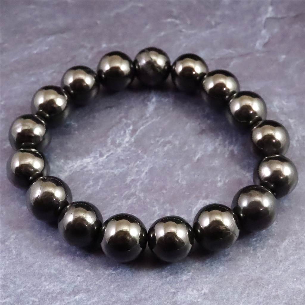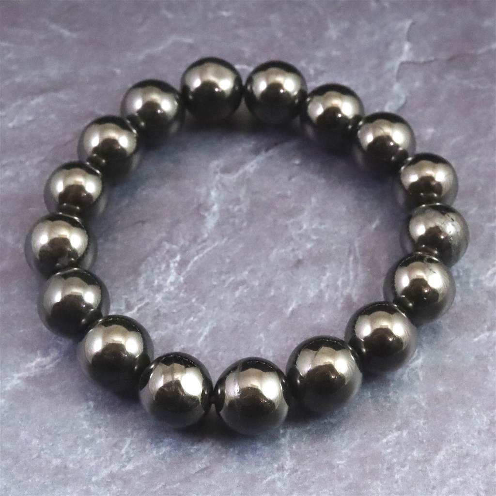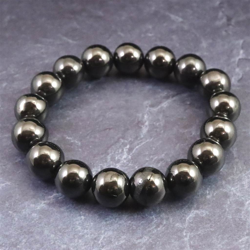 ノーブルシュンガイト エリートシュンガイト 12mm玉ブレスレット 33.34g (ID:54305)
