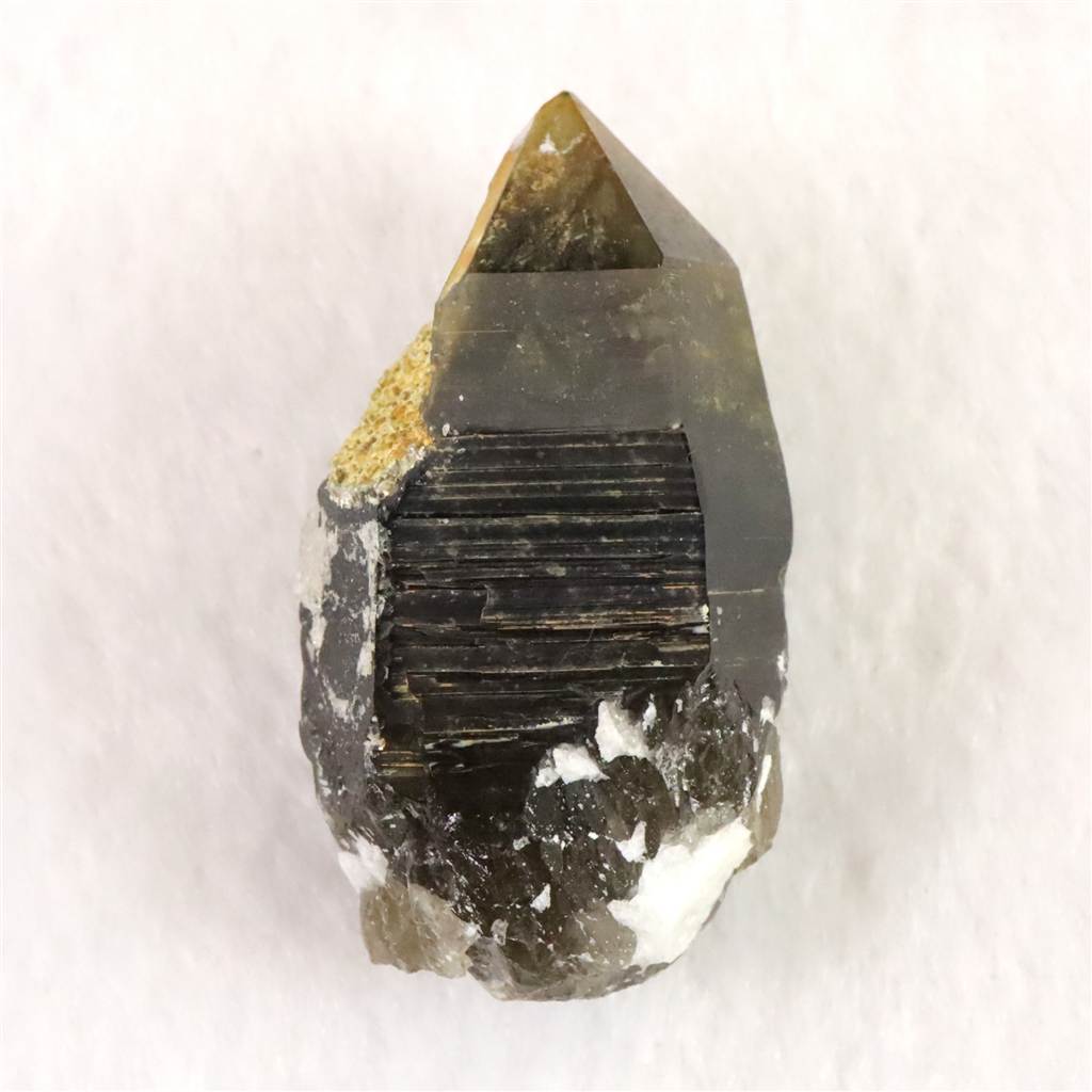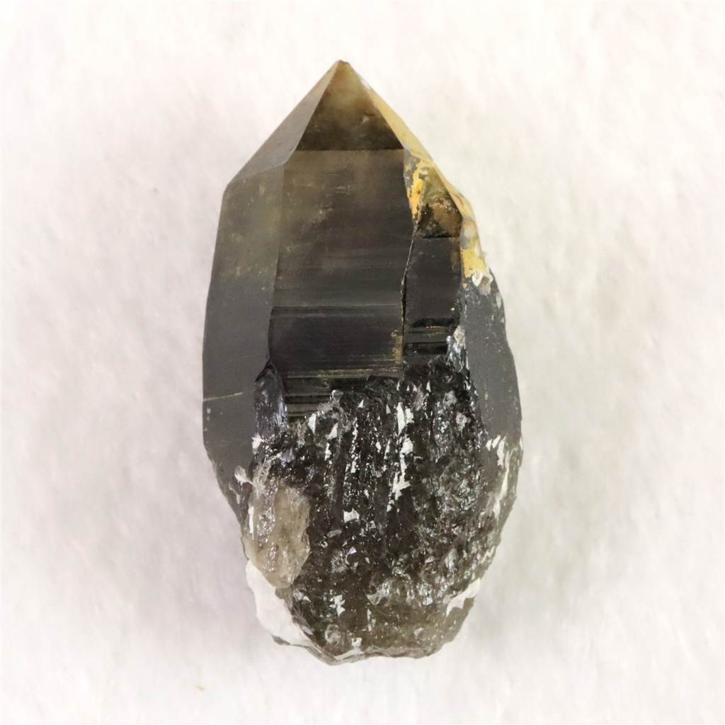 ◆ 岐阜県中津川市蛭川地区で産出される黒水晶(モリオン)は、日本国内でも特に知られる産地のひとつです。モリオンは石英グループに属し、透明な水晶に比べて深い黒色を呈するのが特徴です。この黒色は結晶中に取り込まれた微量元素や放射線の影響によるもので、光をほとんど通さない漆黒の外観を持ちます。蛭川の黒水晶は、結晶が比較的しっかりと発達し、稀に大きな結晶や美しい結晶面を備えるものも確認されています。産出量は限られており、国産モリオンの代表格として鉱物学的にも価値が高い存在です。