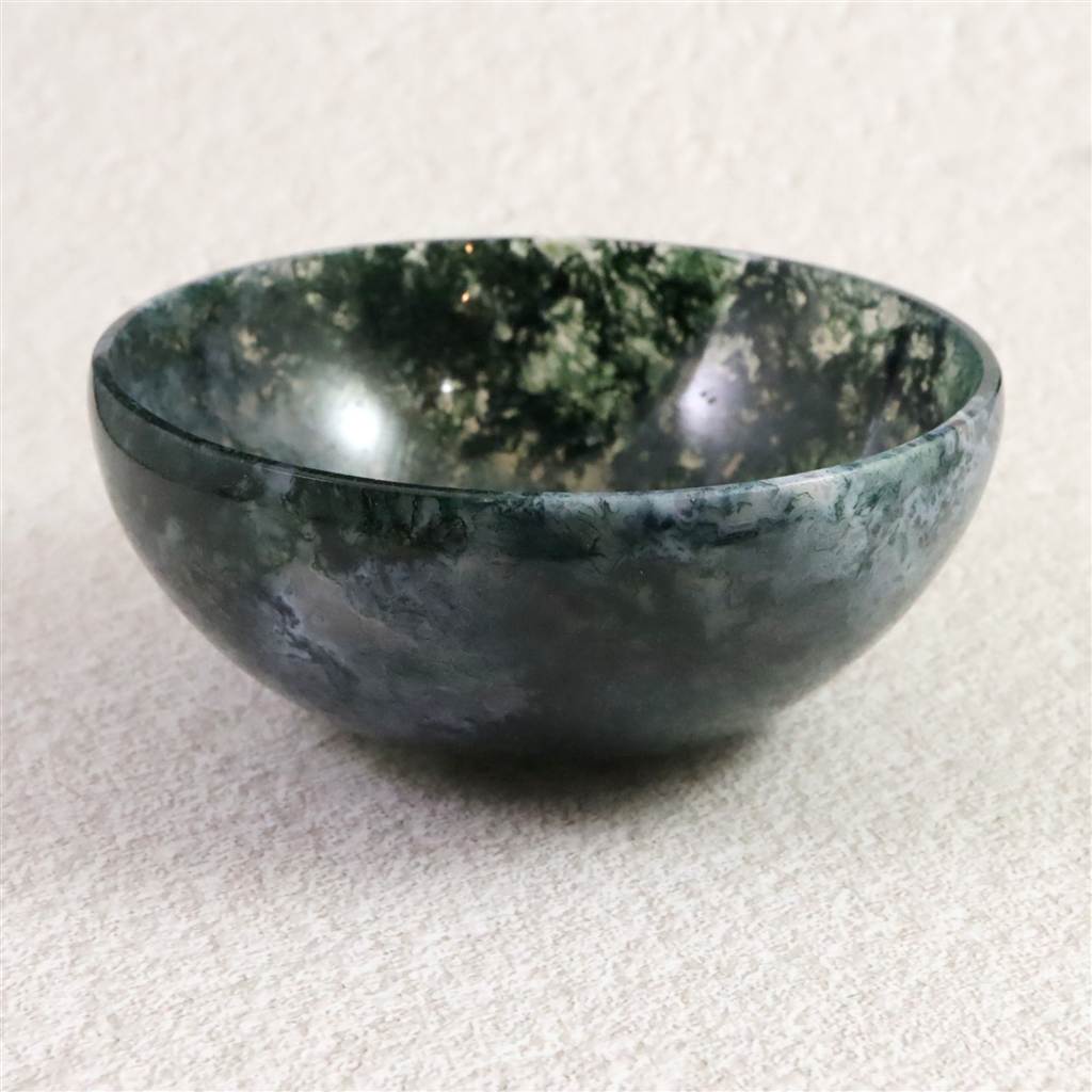 ◆ 本商品写真は現物のものです。写真の商品をお届けします。モスアゲート(苔瑪瑙)を贅沢に削り出したボウル(器)です。縁の(白)部分は欠けでは無くインクルージョンとなりますのでご安心願います。