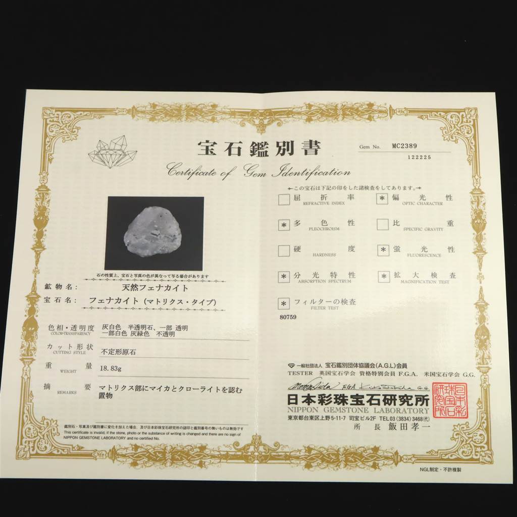 ロシア産 フェナカイト 30mm原石 鑑別書付 18.83g (ID:80759)