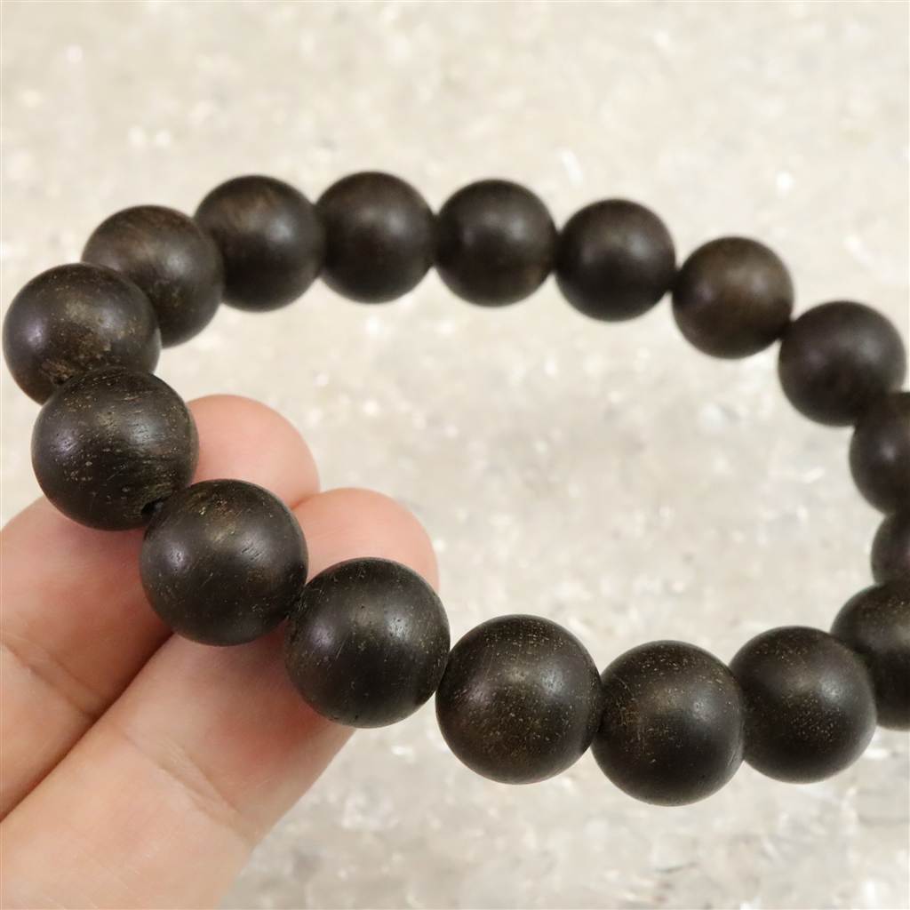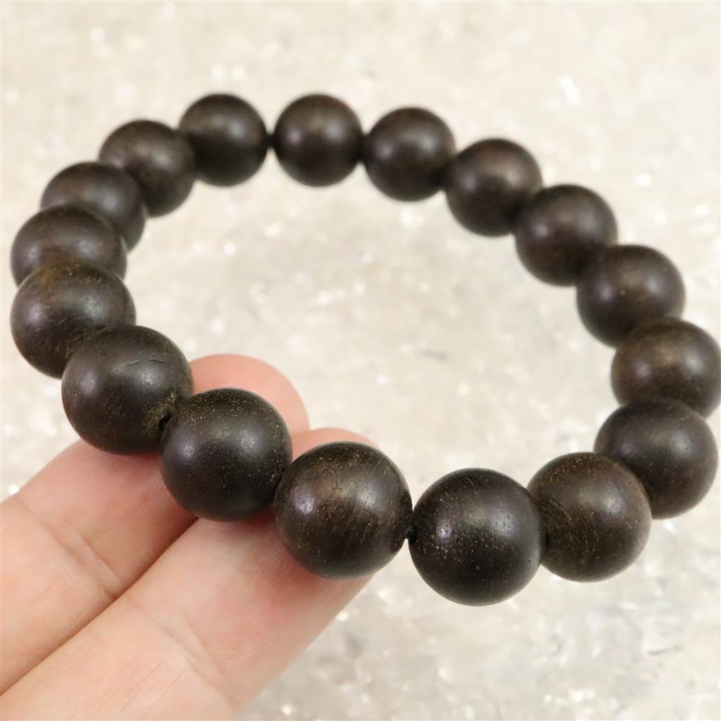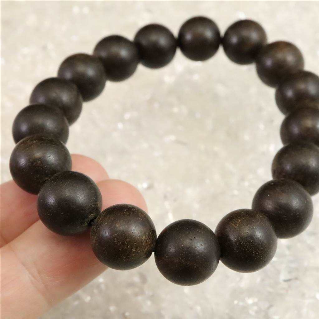 ◆ 沈香木と沈香は、同じ沈香樹(ジンチョウゲ科ジンコウ属)の木を指しますが、沈香は沈香木の中から樹脂が凝縮・沈着した部分だけを指します。沈香木は、通常は水に浮く軽い木ですが、樹脂部分が重くなって水に沈むことから「沈水香木」と呼ばれ、それが略されて「沈香」と呼ばれるようになりました。本商品は沈香木ではなく(沈香)部分だけをビーズにした大変希少なブレスレットとなります。沈香特有の香りもしっかりとあります。