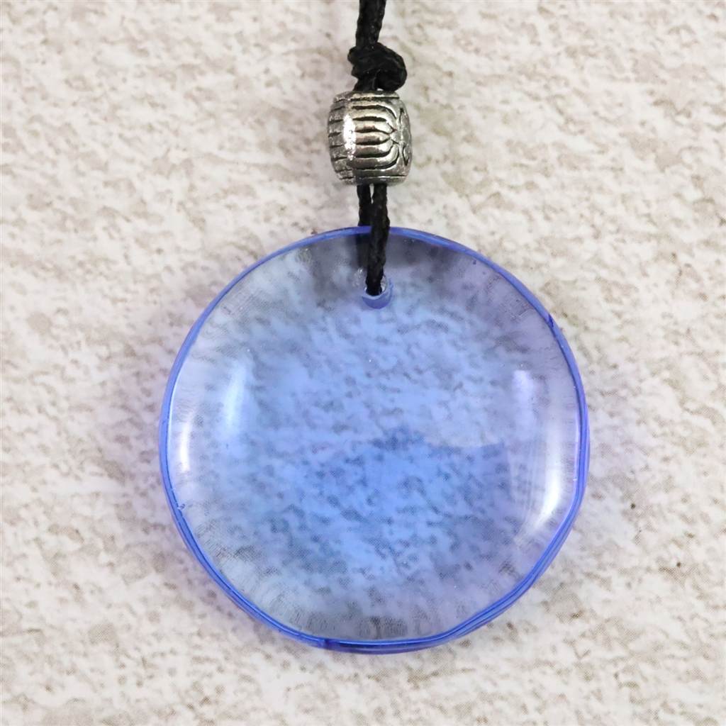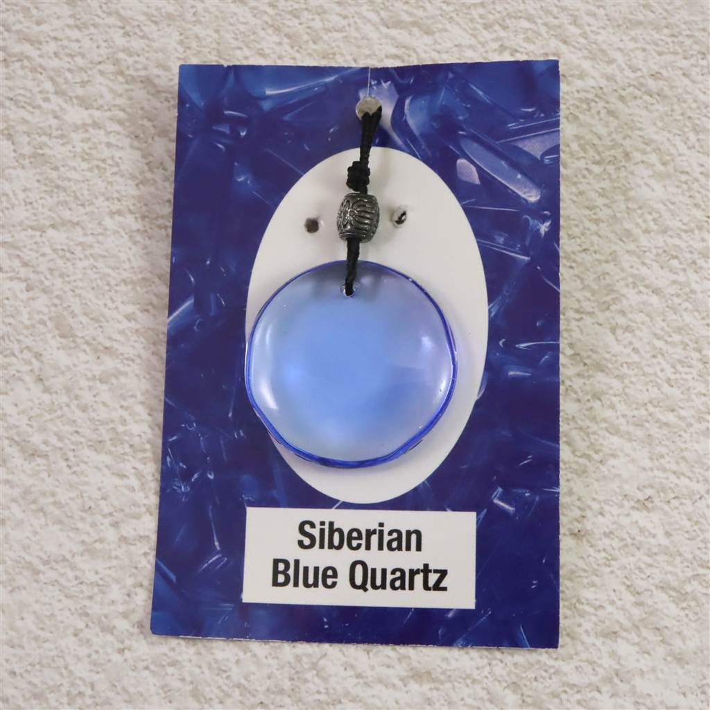 H&E社 シベリアンブルークォーツ ディスク型タンブル コード ペンダント 8.4g (ID:15078)