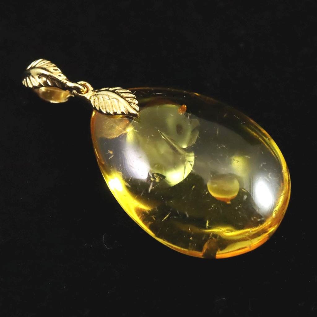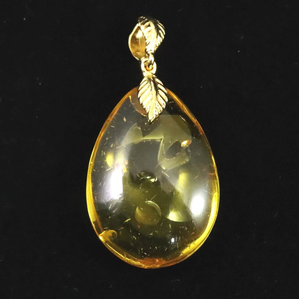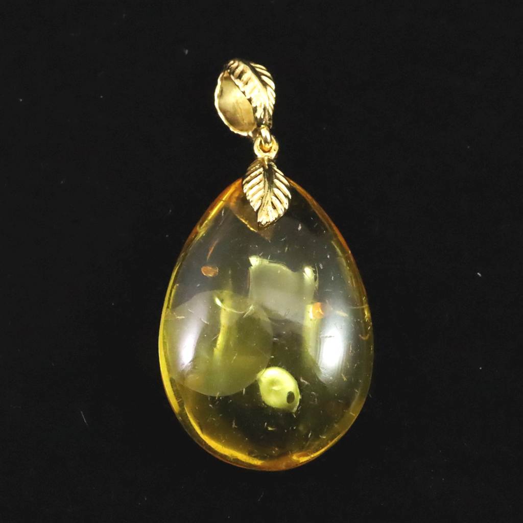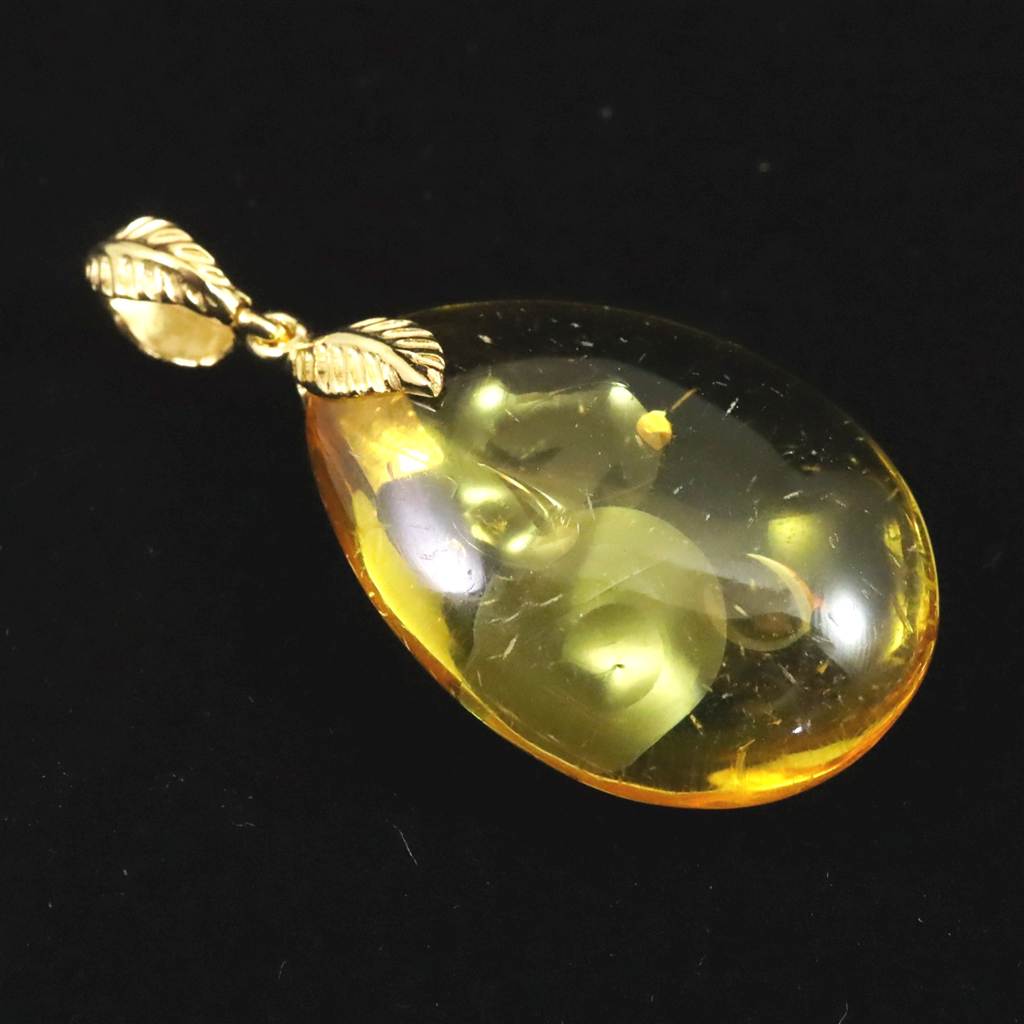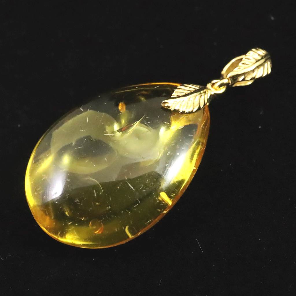 天然琥珀 バルティックアンバー 26mm ペアシェイプ ペンダントトップ 3.0g (ID:15581)