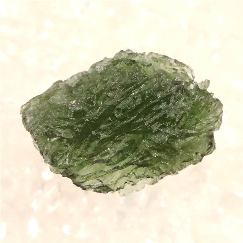 ◆ モルダバイトは、約1,500万年前に隕石衝突の熱と衝撃によって形成された天然ガラス「テクタイト」の一種で、主にチェコ南部モルダウ川流域で産出します。透明感ある深緑色と、内部に見られる気泡やしわ模様が特徴です。宇宙と地球の融合を象徴し、意識の変容や霊的成長を促す象徴として知られます。また、固定観念からの解放や新たな視点の発見を象徴し、瞑想や自己探求の場面で用いられることもあります。その特異な生成背景と美しい色合いが、多くの人を魅了してきた天然石です。