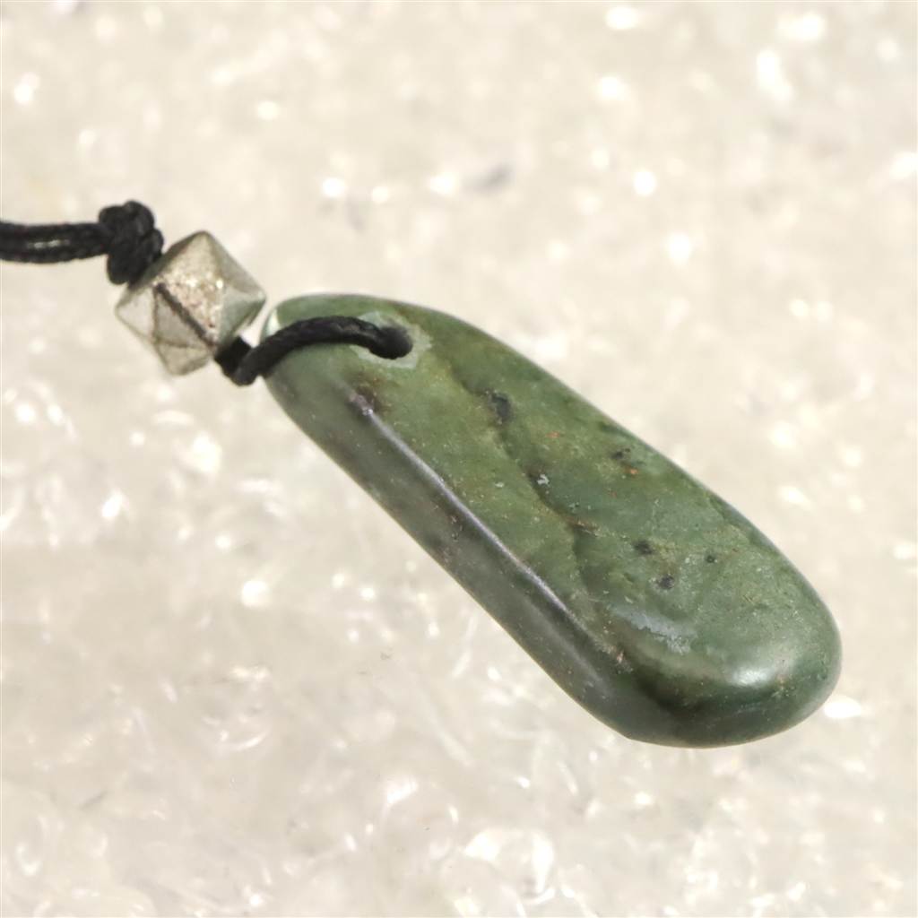 H&E社 ニュージーランド グリーンストーン タンブル コードペンンダント 4.9g (ID:28845)