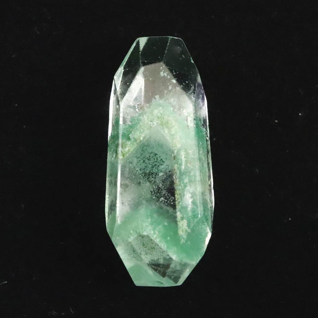 エメラルドグリーンファントムクォーツ 24x10mm 原石ラフカット ルース 3.39g (ID:32250)