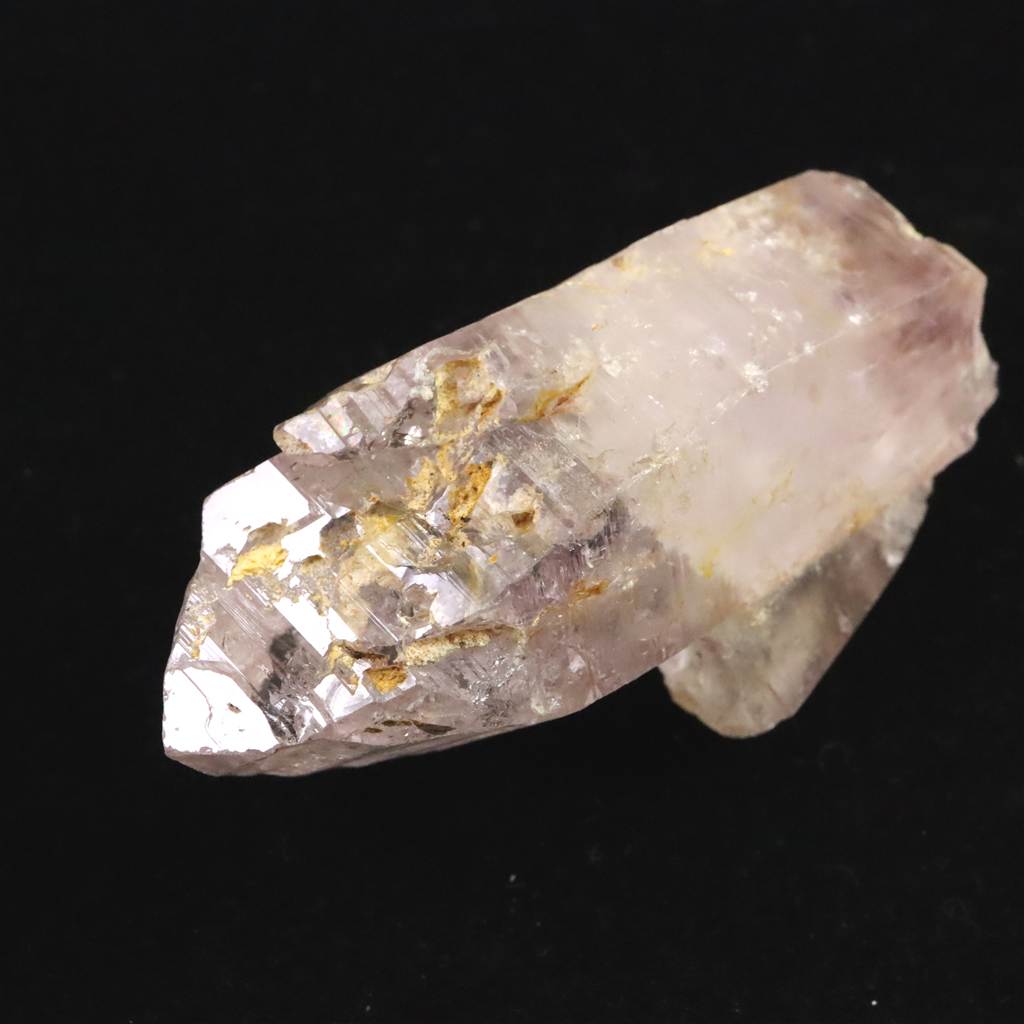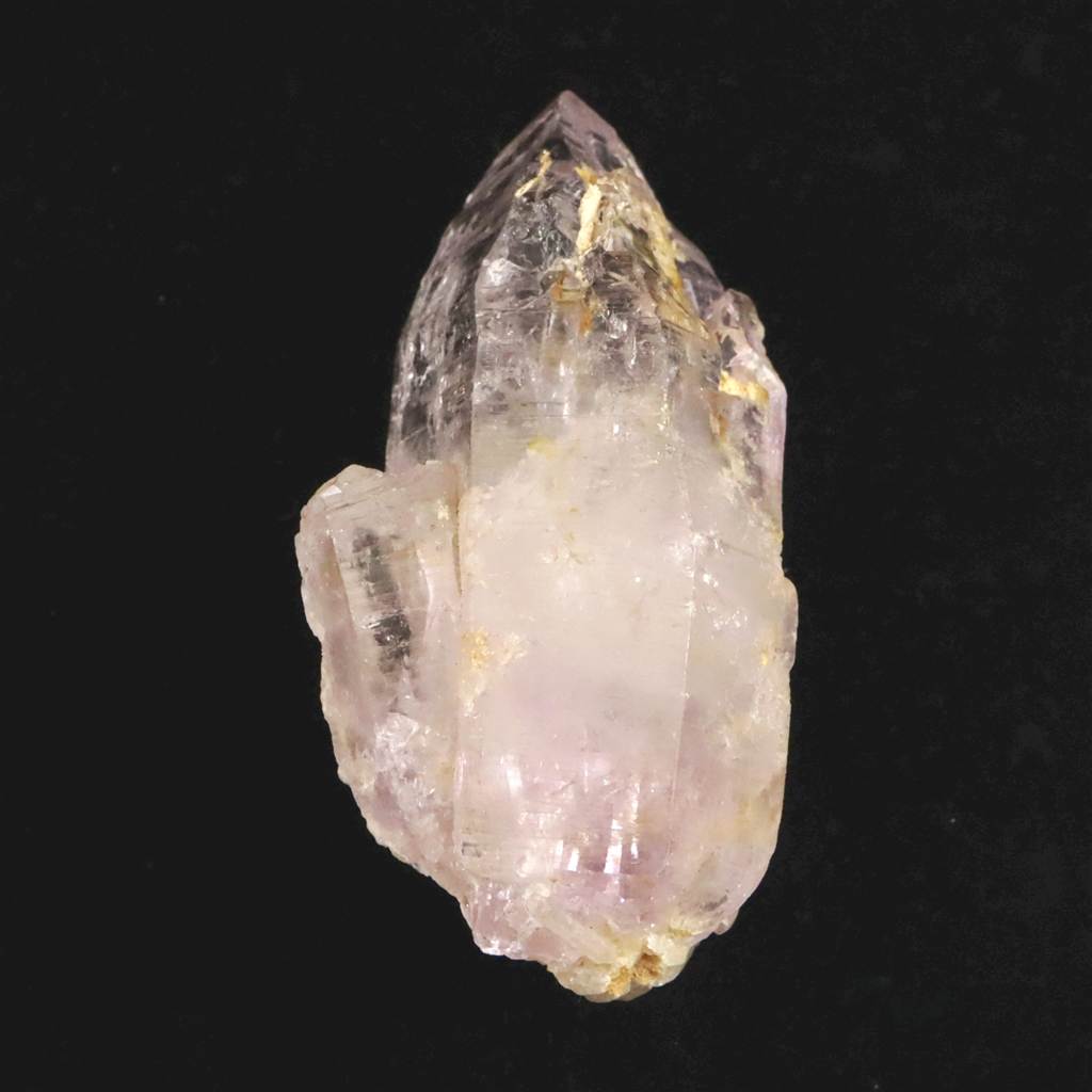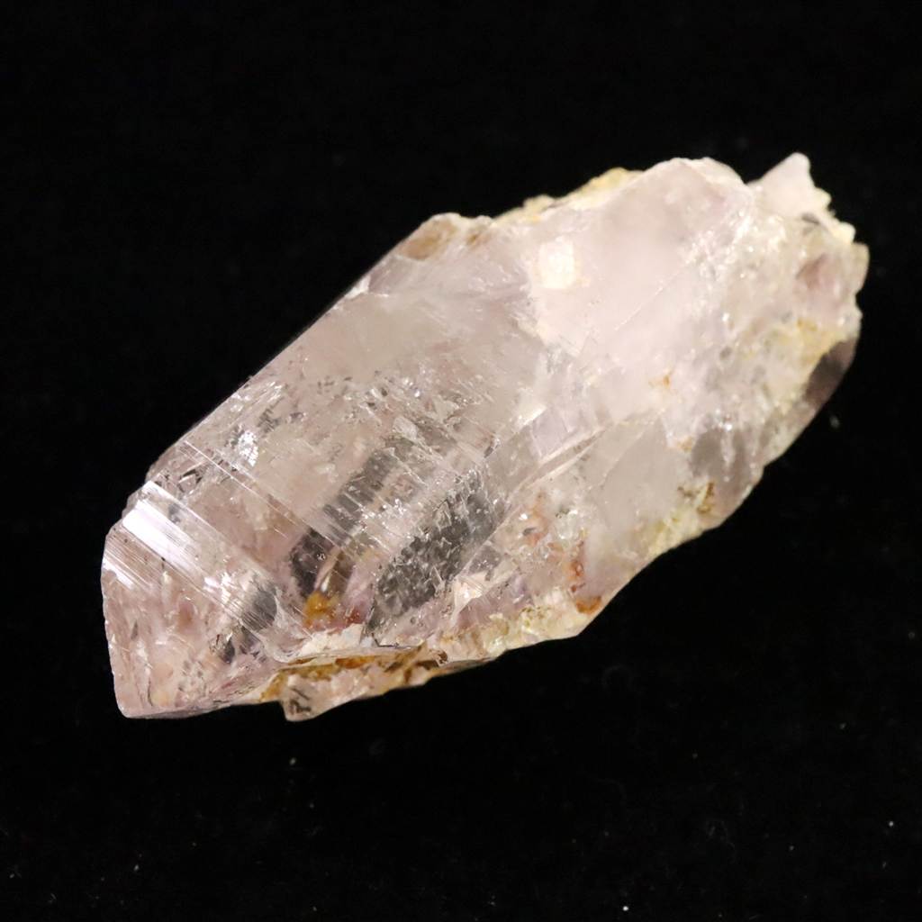 ◆ メキシコ・ベラクルス州ラス・ヴィガス鉱山産のアメジストです。全長71mm、重量81.5gという、細長い結晶が多い同産地としては異例のボリュームを誇る「シングルポイント」です。特有の透明度高いラベンダーカラーが美しく、柱面には成長の証である「条線(バーコード)」が刻まれています。メインファセットから覗くことができる結晶内部には太古の気泡が動く「水入り」仕様であり、側面には小さな「子結晶」が寄り添うように共生しています。