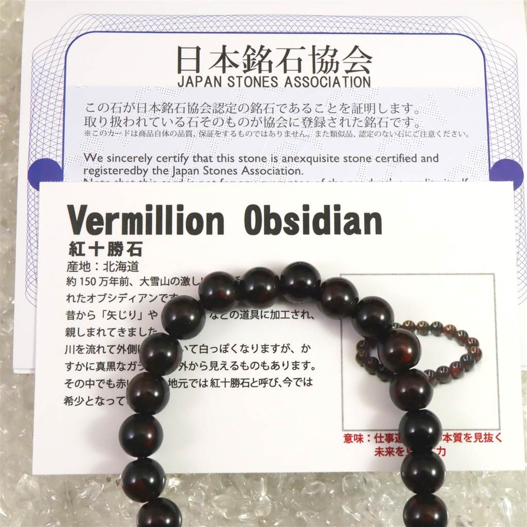 ・商品名 :北海道産 ヴァーミリオンオブシディアン(紅十勝) 8mm玉ブレスレット 証明書付 15.3g (ID:44137)