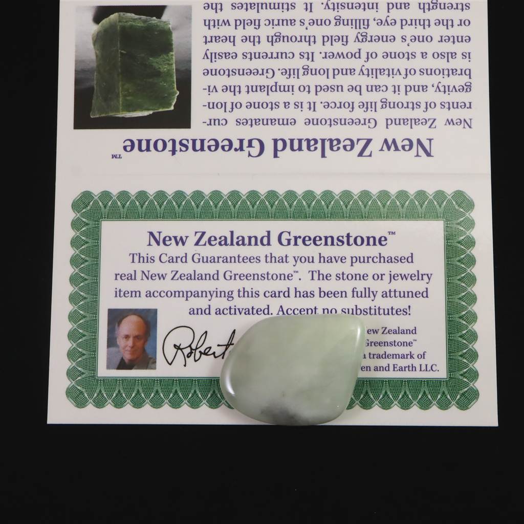 ◆ グリーンストーンとは、ニュージーランド原産の緑色の宝石を指す名称で、ネフライトやサーペンタインが含まれるます。マオリ族はグリーンストーンを「ワイルアの石」(Pou-namu)と名付け、古くから崇拝してきました。グリーンストーンは生命の石であり、強いライフ・フォースのエネルギーを発します。長寿の石であり、ヒーリング・ワークに使用することで、生命力の波動を植え付け、長寿のための身体プログラムを組むことができます。グリーンストーンはまた、パワーの石でもあります。その電流は、ハートまたはサードアイを通して人のエネルギーフィールドに入りやすく、オーリックフィールドを強さと活力で満たします。勇気、忠誠心、情熱、自由といった感情を刺激し、そのひとつひとつを尊重することがいかに大切かを意識させます。また、グリーンストーンは魔法の石であり、持ち主に力を伝えることができます。グリーンストーンはニュージーランドの古代民族と結びついており、彼らのスピリットに助けを求めることができると言われています。