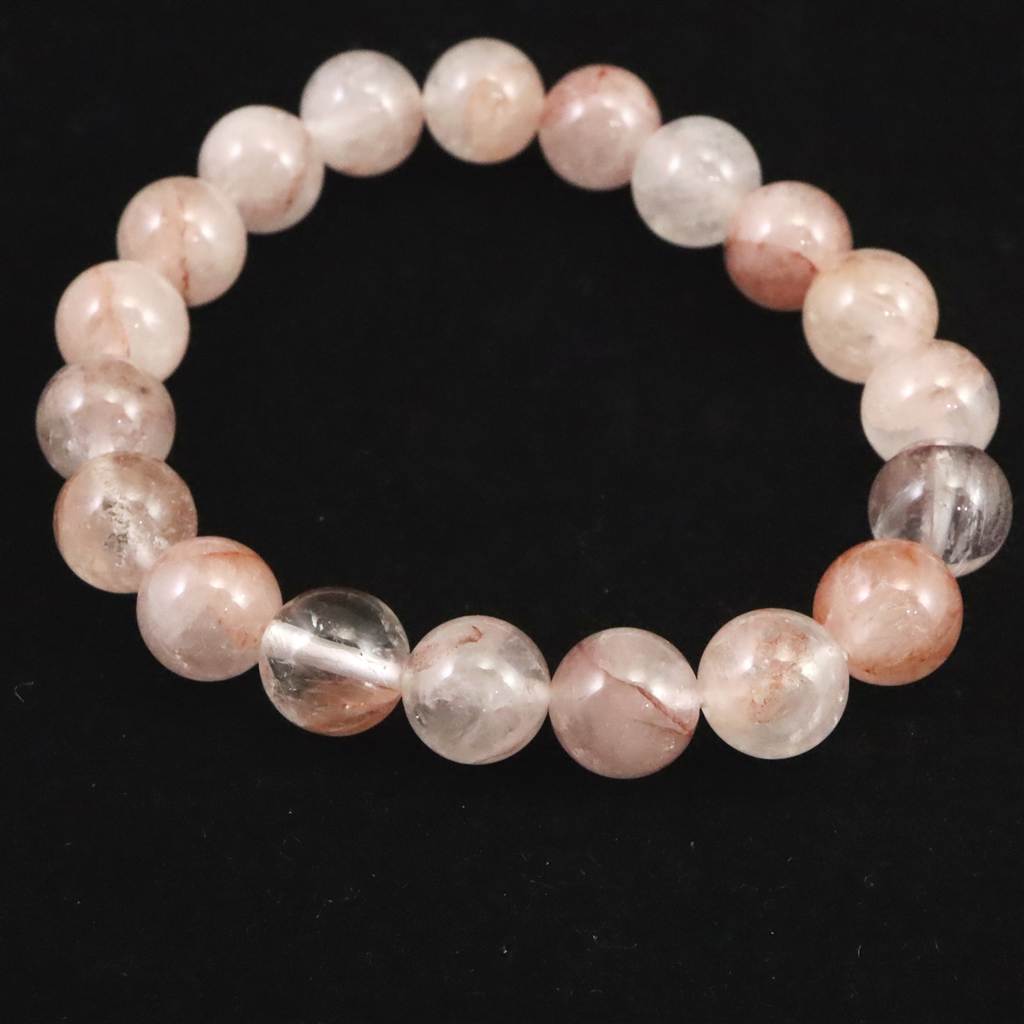 H&E社 ピンクファイア アゼツライト(AZOZEO) 10mm玉ブレスレット 証明書付 25.8g (ID:52514)