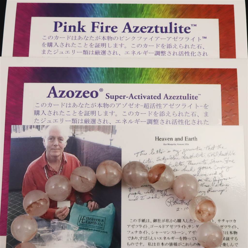 ◆ ロバート・シモンズ著書より...ピンクファイアーアゼツライトは、半透明で褐色の内包物のある水晶であるアグニタイトの超活性化されたものであり、アフリカ海岸の島で発見されました。アグニタイトはそれだけでもパワフルな石ですが、アゾゼオの超活性化プロセスによってアゼツライト化されており、霊的な経験のイニシエーションへと誘導します。ピンクファイアーアゼツライトは世界とすべての存在に対する愛の質を高めます。この石は、人生そのものが愛であり、愛することがすべての命を支えるということをわたしたちに教えます。わたしたちの内なる叡智を呼び覚まレ愛こそが私たちの十台であり生命力であり、宇宙に満ちた生命エネルギーそのものであることを思い出させてくれるでしょう。
