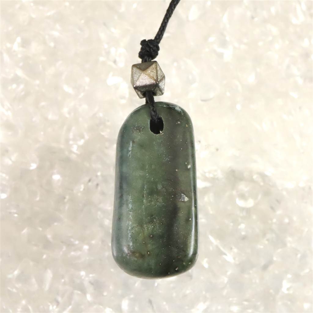 H&E社 ニュージーランド グリーンストーン タンブル コードペンンダント 5.9g (ID:55194)