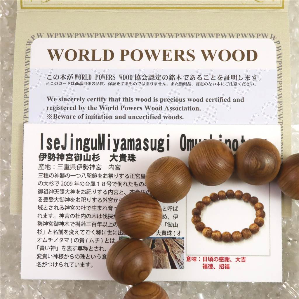 ・商品名 :伊勢神宮御山杉 内宮大杉 15.5mm玉ブレスレット 証明書付 13.3g (ID:56623)