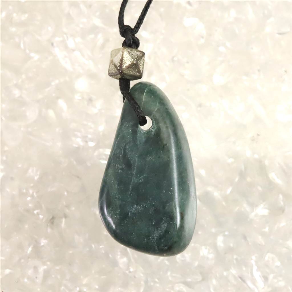 H&E社 ニュージーランド グリーンストーン タンブル コードペンンダント 5.9g (ID:59080)