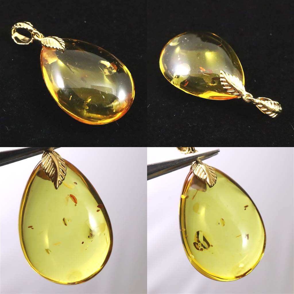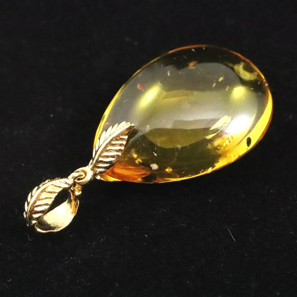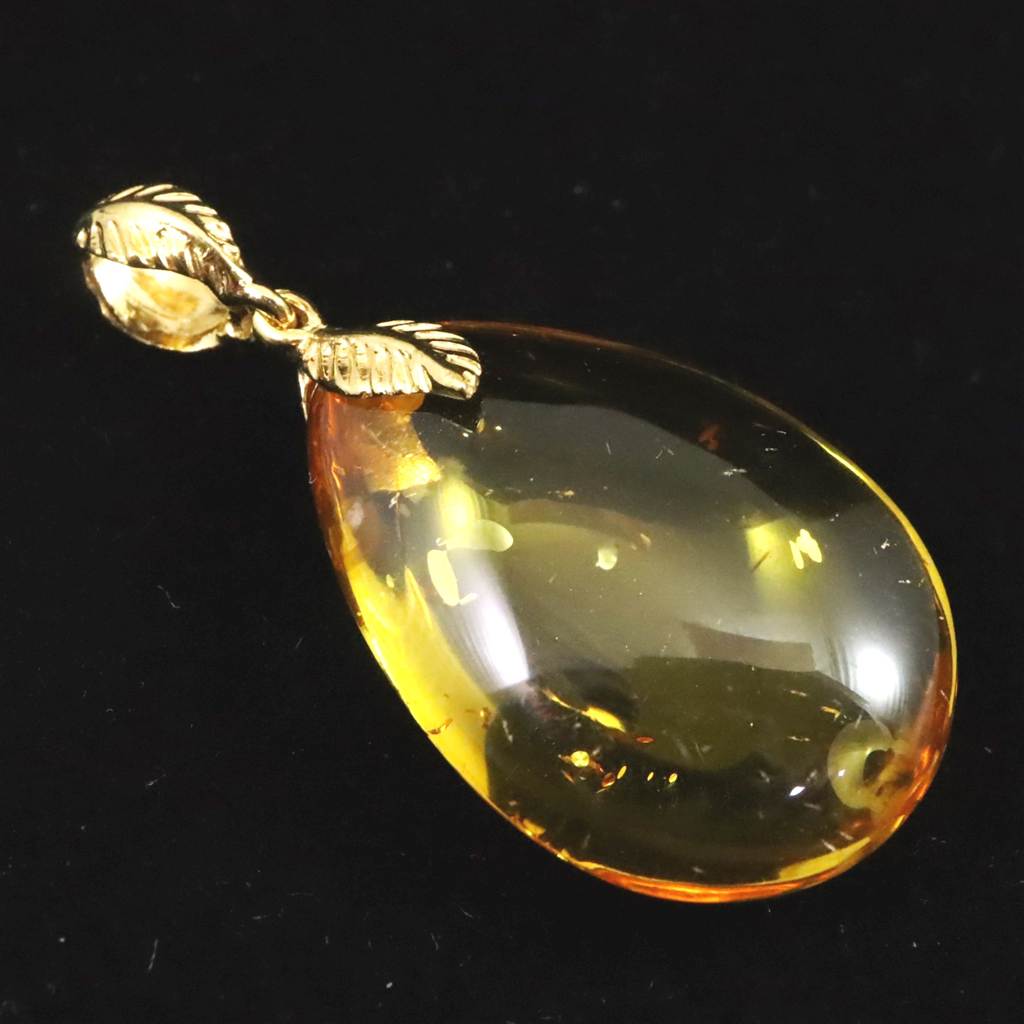 天然琥珀 バルティックアンバー 25mm ペアシェイプ ペンダントトップ 2.8g (ID:67400)