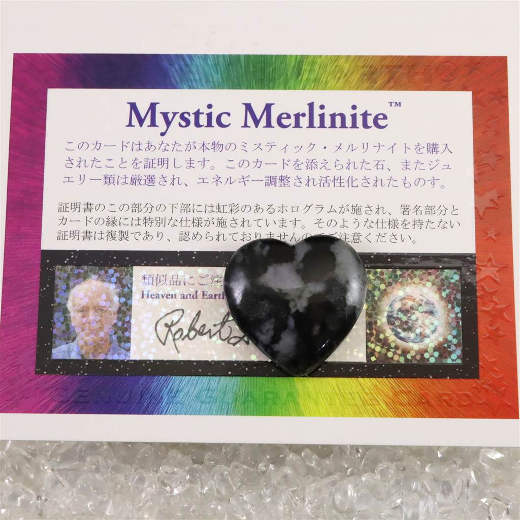 ◆ ロバート・シモンズ氏より...ミスティック・メルリナイトは、目に見える世界と目に見えない世界の間のベールを取り払い、より深い直感的な能力への扉を開くことができます。心の休眠している領域を開くことを容易にすることができます。微妙な領域のコミュニケーションに対する感度を高め、植物や動物の精霊、悪魔のような存在との「対話」を可能にします。魔法の顕現や神秘的な経験への覚醒のための要素エネルギーと働きたい人のために、この石は強力な味方になることができます。ミスティック・メルリナイトの黒と白の混合は、自己の光と影の側面を象徴しています。