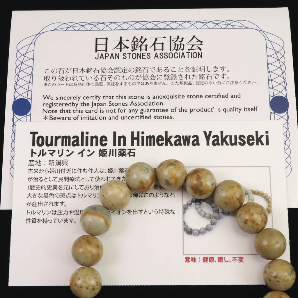 ・商品名 :姫川薬石 トルマリン入り 10mm玉ブレスレット 証明書付 28.1g (ID:42716)
