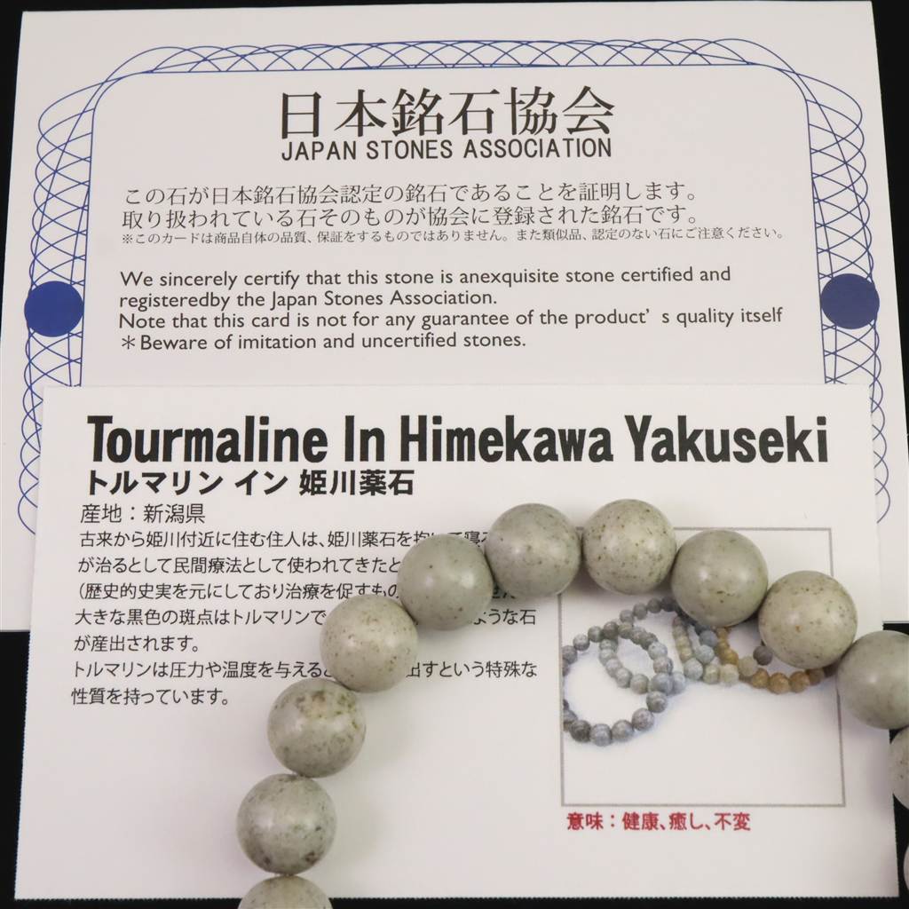 ・商品名 :姫川薬石 トルマリン入り 10mm玉ブレスレット 証明書付 27.5g (ID:97175)