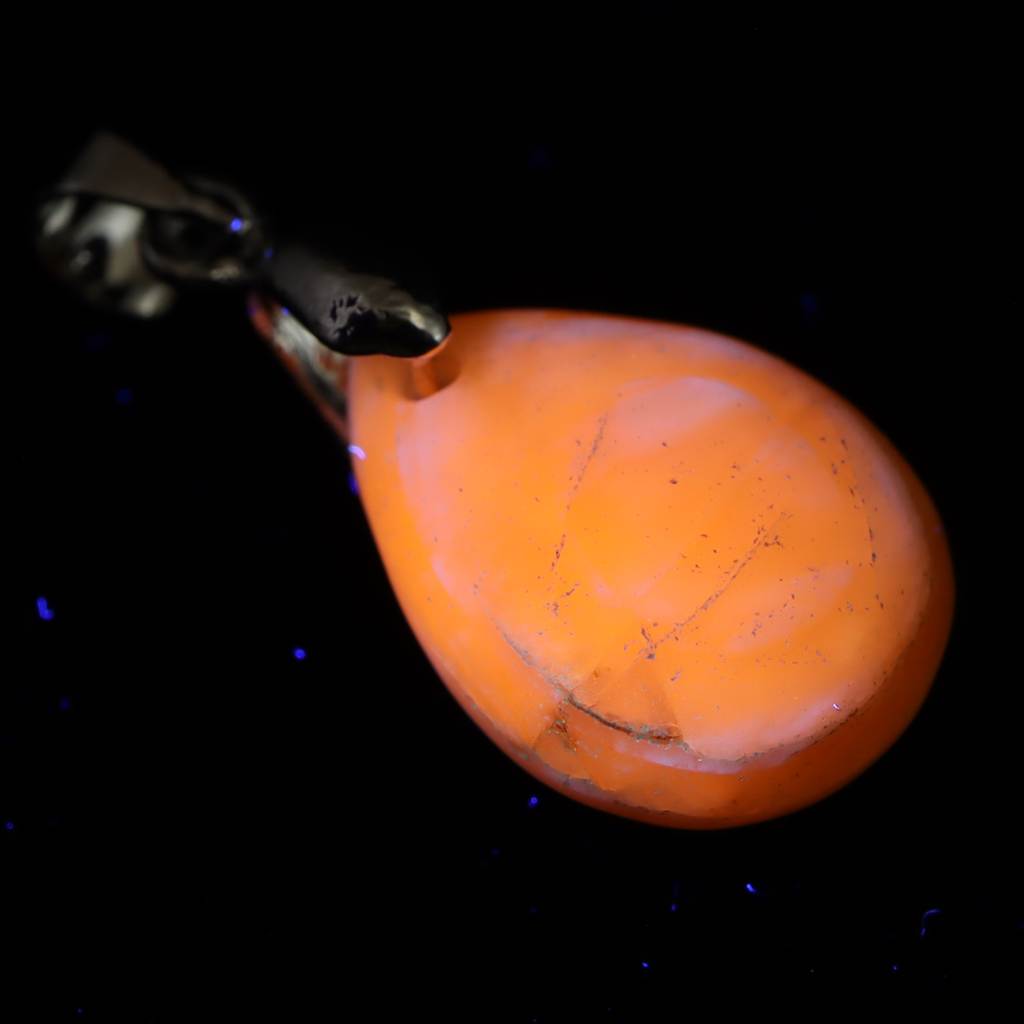 北海道産 蛍光オパール オレンジ 16mmペアシェイプ ペンダントトップ 1.4g (ID:36251)