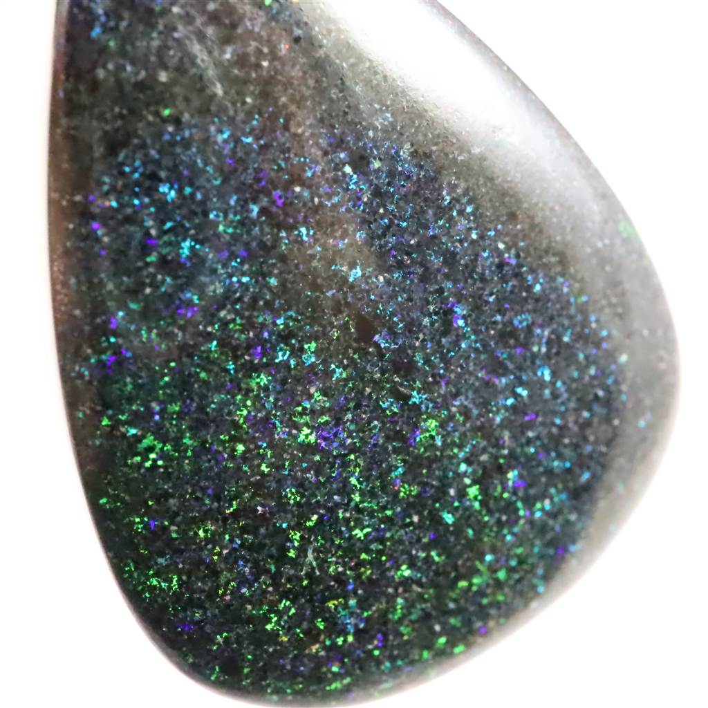 ◆ 青黒く輝く石地に鮮やかな緑色と青色のラメが浮かびあがる非常に美しいマトリクスオパールです。
