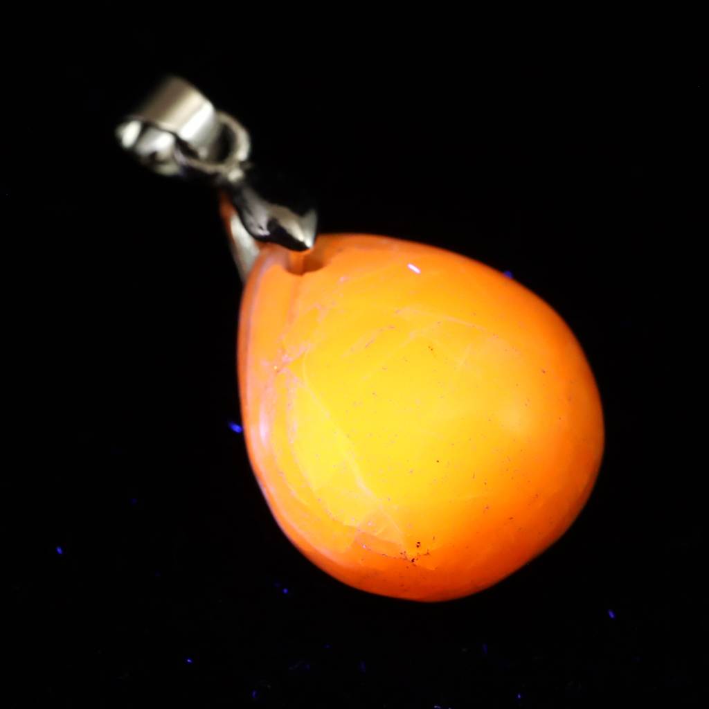 北海道産 蛍光オパール オレンジ 16mmペアシェイプ ペンダントトップ 2.0g (ID:72559)