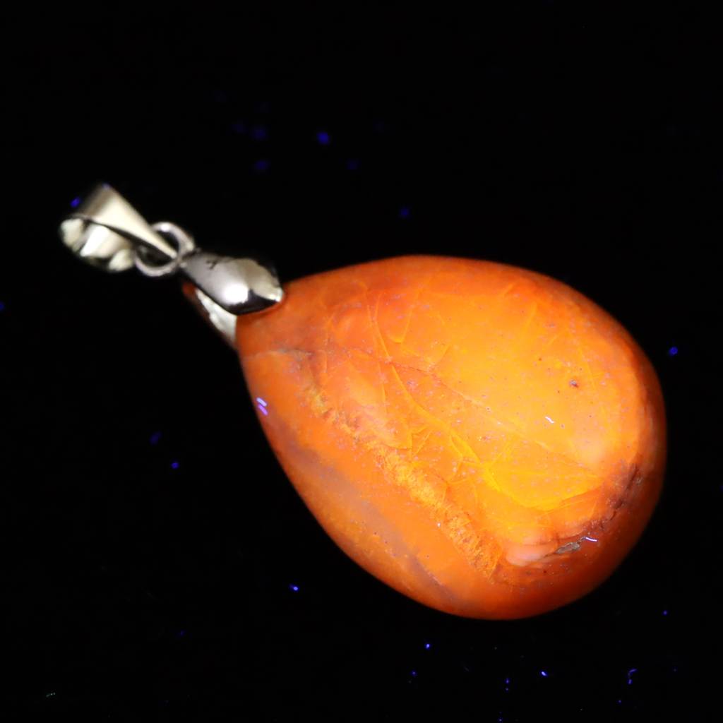 北海道産 蛍光オパール オレンジ 22mmペアシェイプ ペンダントトップ 4.0g (ID:94409)