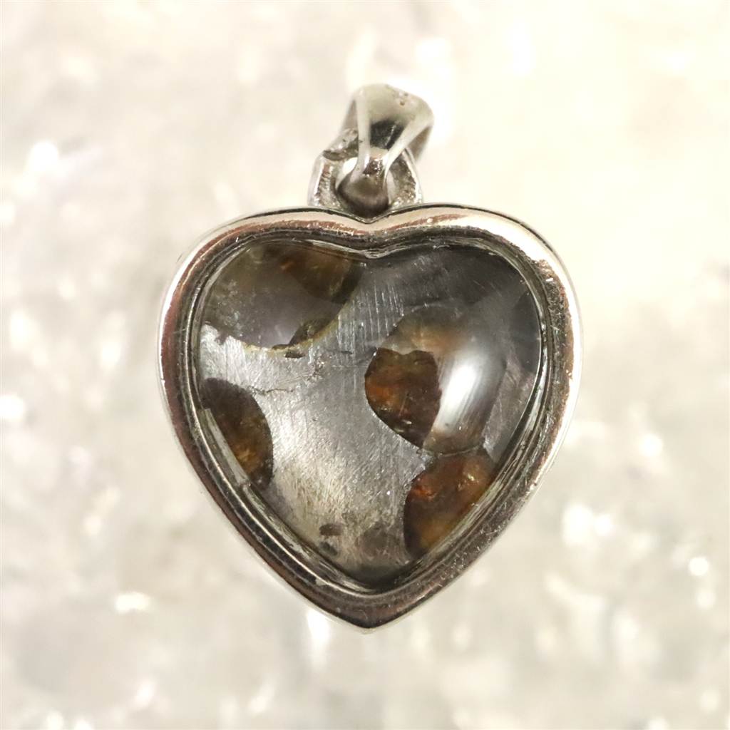 ロシア産 パラサイト隕石 10mmハート ペンダントトップ 3.15g (ID:73463)