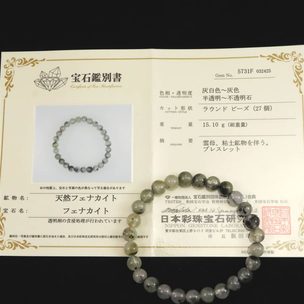 ◆ 本商品写真は現物のものです。写真の商品をお届けします。透明度の高いブラジル産のフェナカイトブレスレットです。日本彩珠宝石研究所の鑑別書付です。
